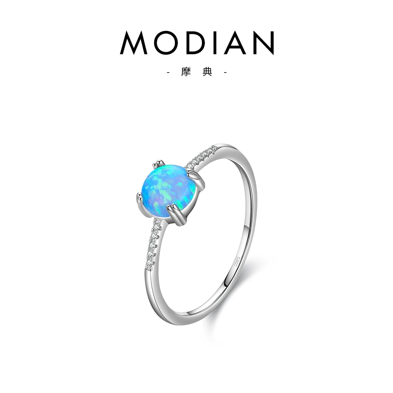 Light luxury sterling silver thin and versatile cold style opal ring