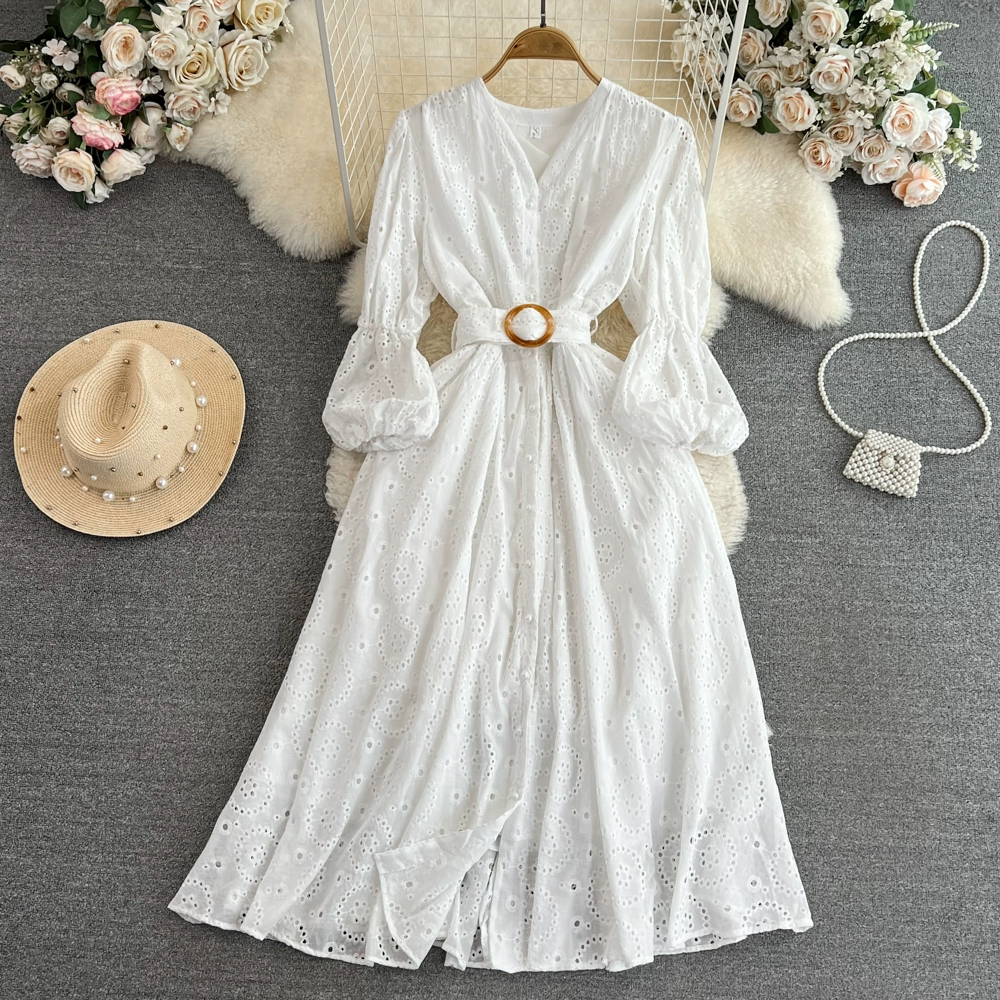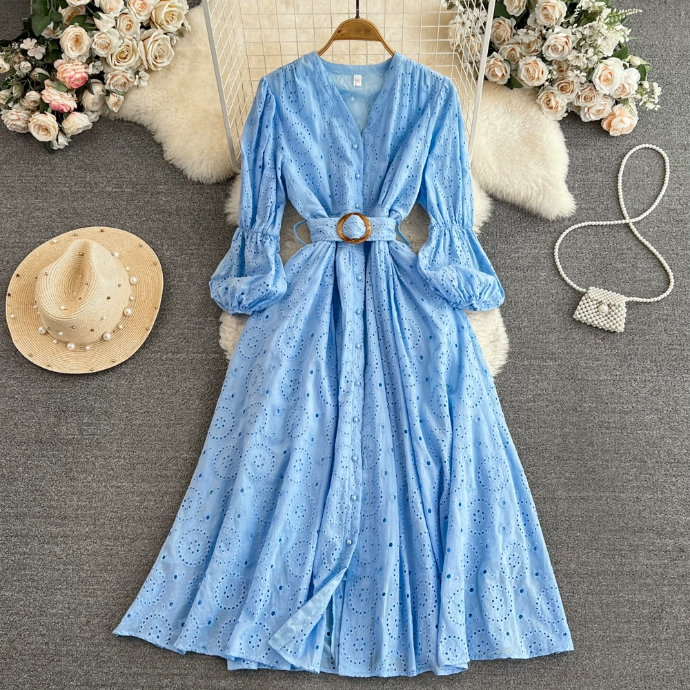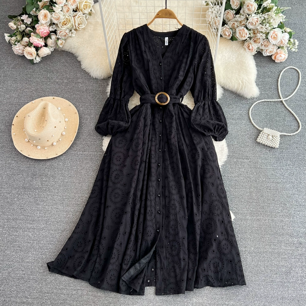 | nameOriginal | Light luxury summer lantern long-sleeved A-line dress with crochet pattern |