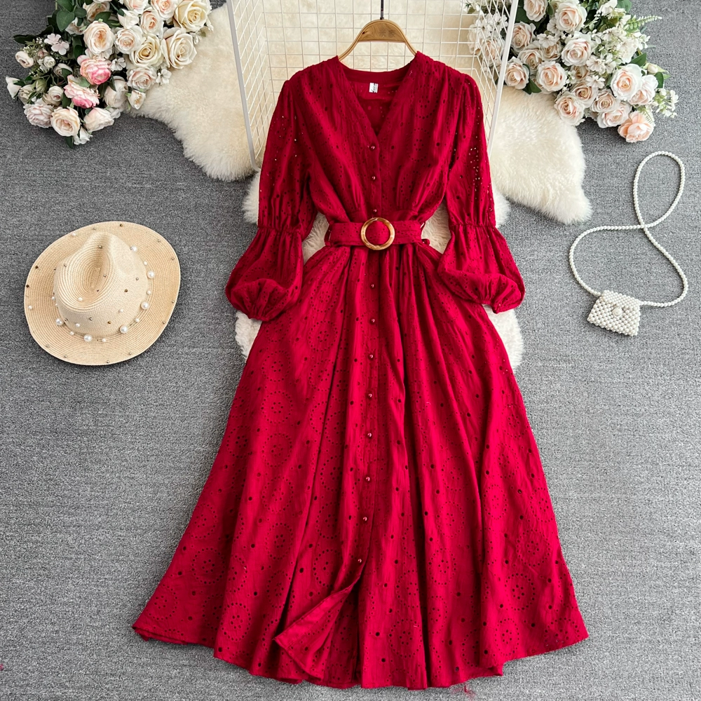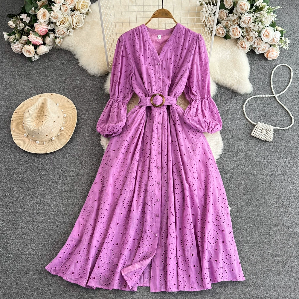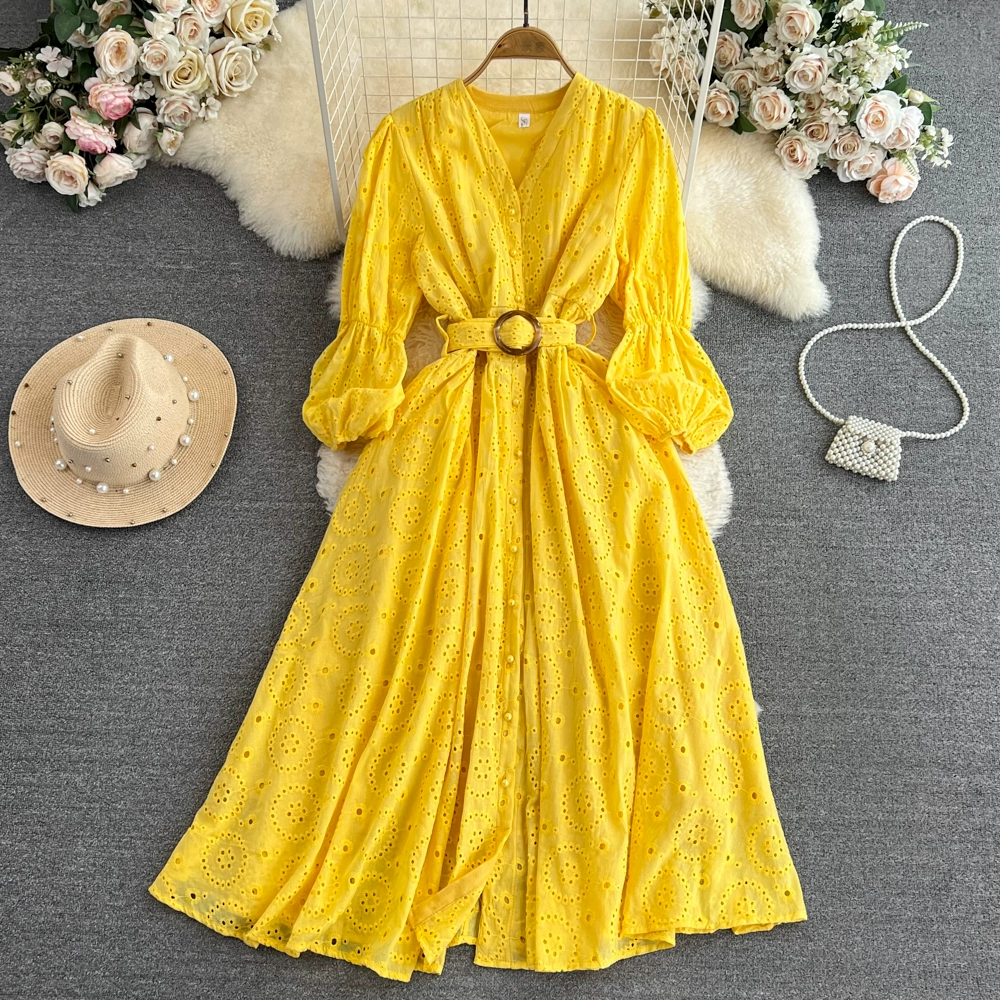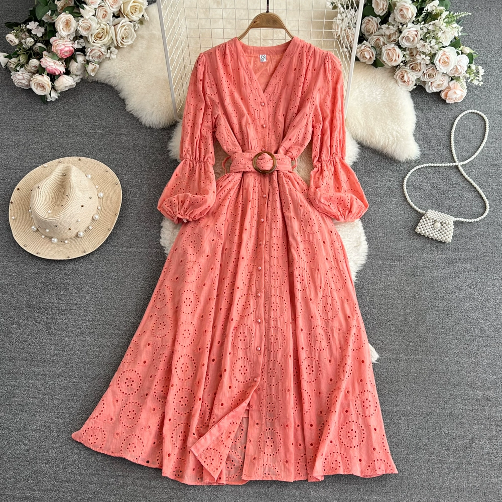 | nameOriginal | Light luxury summer lantern long-sleeved A-line dress with crochet pattern |