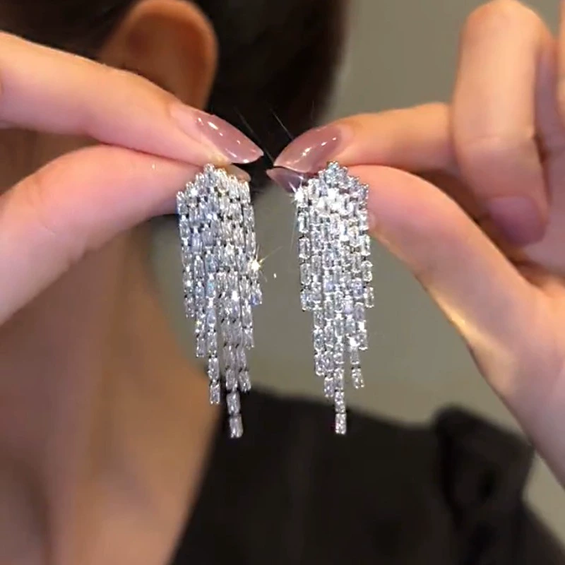 | nameOriginal | Light luxury tassel earrings for women ins 925 silver needle zircon |