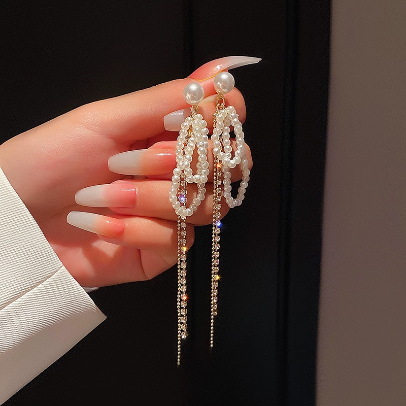 | nameOriginal | Light luxury tassel earrings for women with round faces to slim down 925 silver needles |