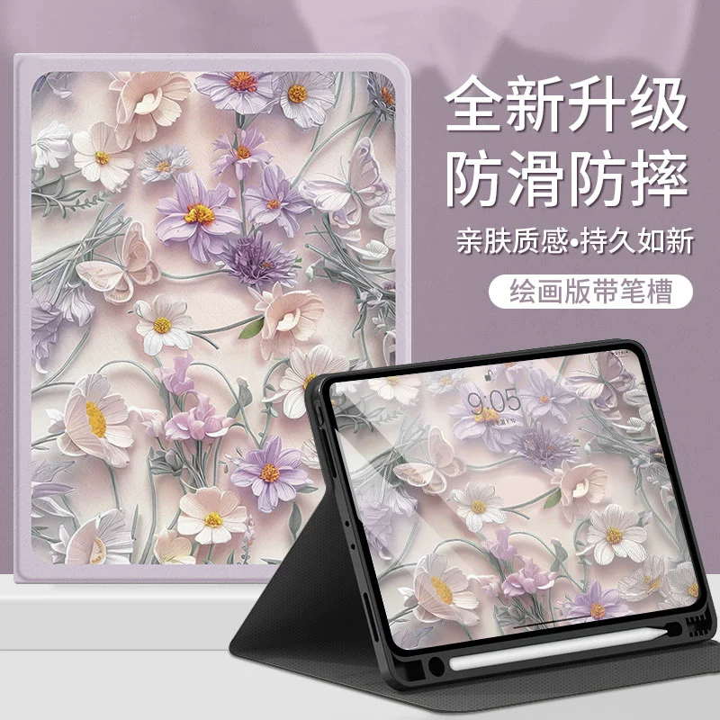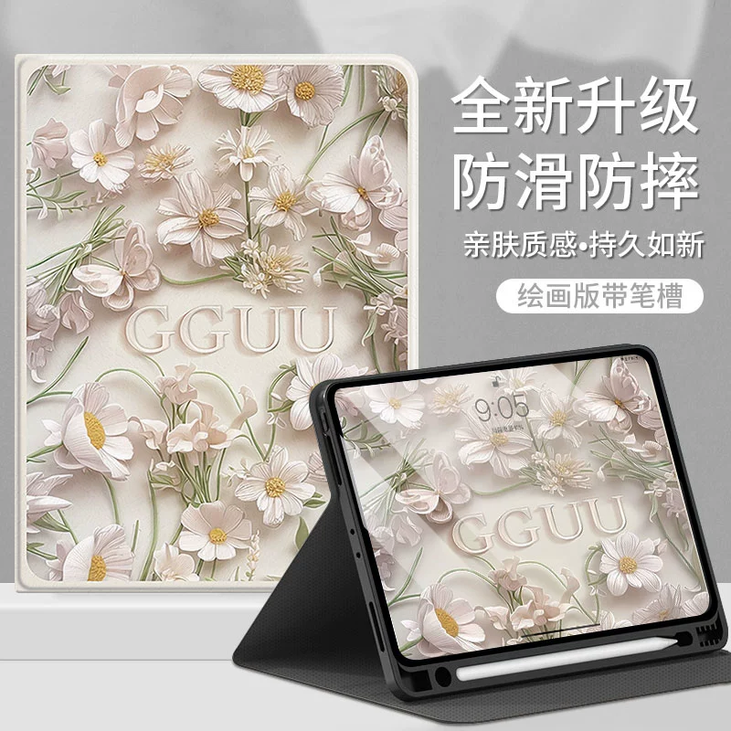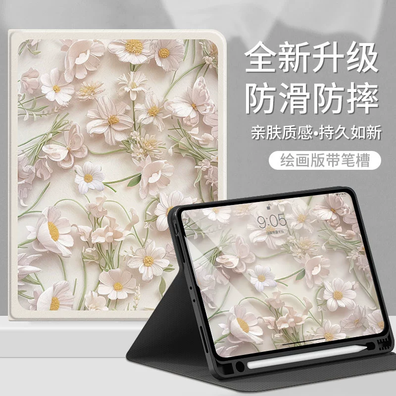 | nameOriginal | Light luxury three-dimensional flower suitable for ipad protective cover 10th generation tablet mini new shell 6 thin 5 women 4 silicone 8 with pen slot 11 inches 9 Apple 10th generation all-inclusive mini anti-fall air computer pro nine |