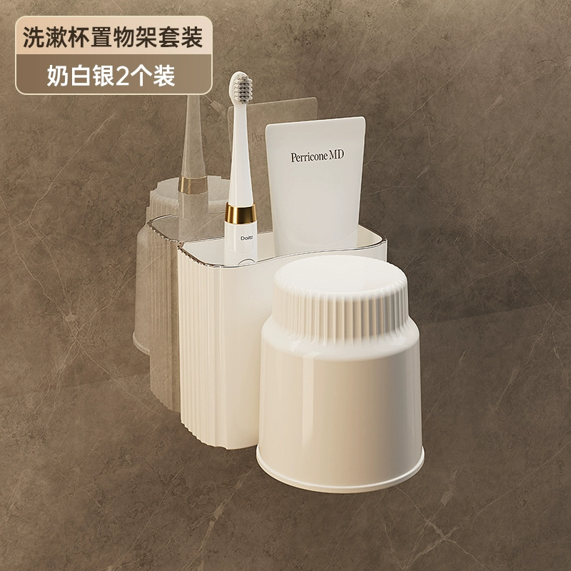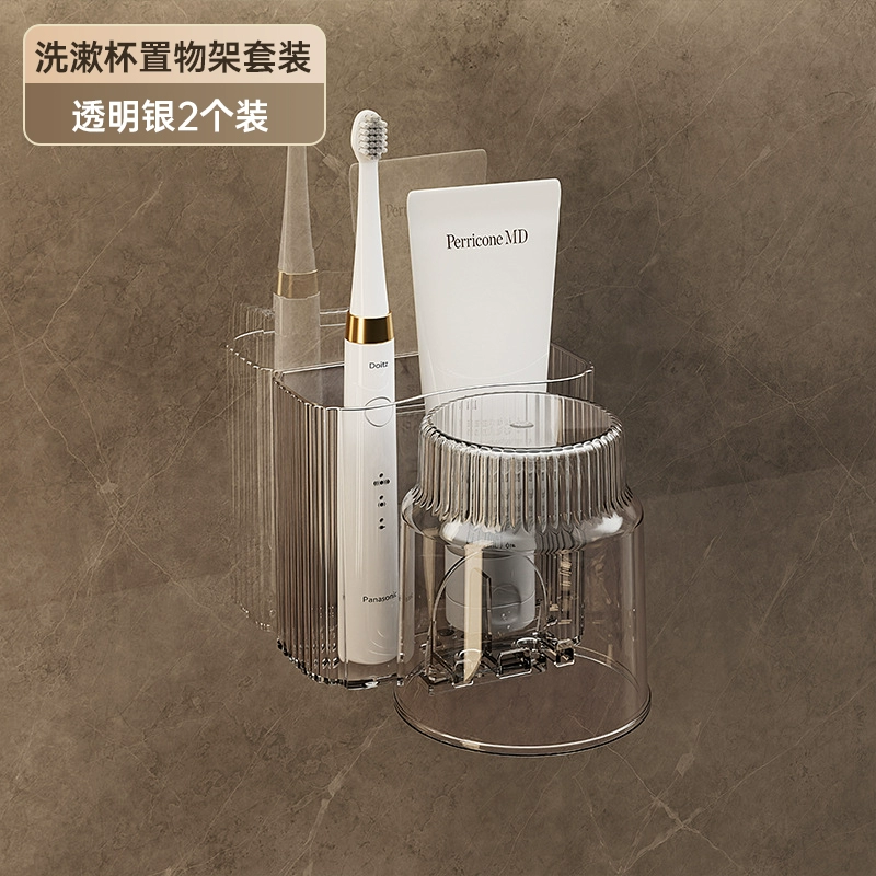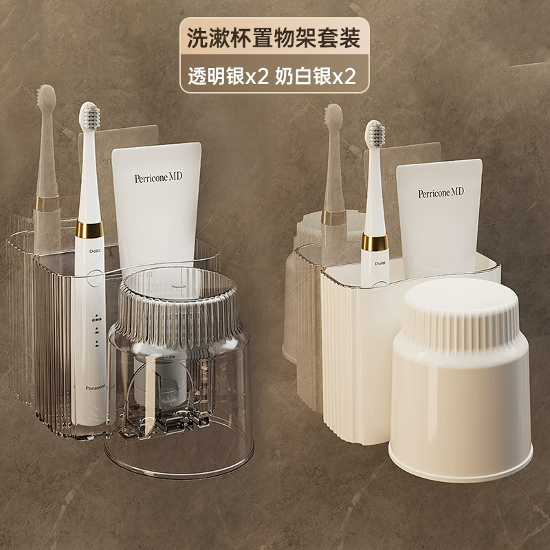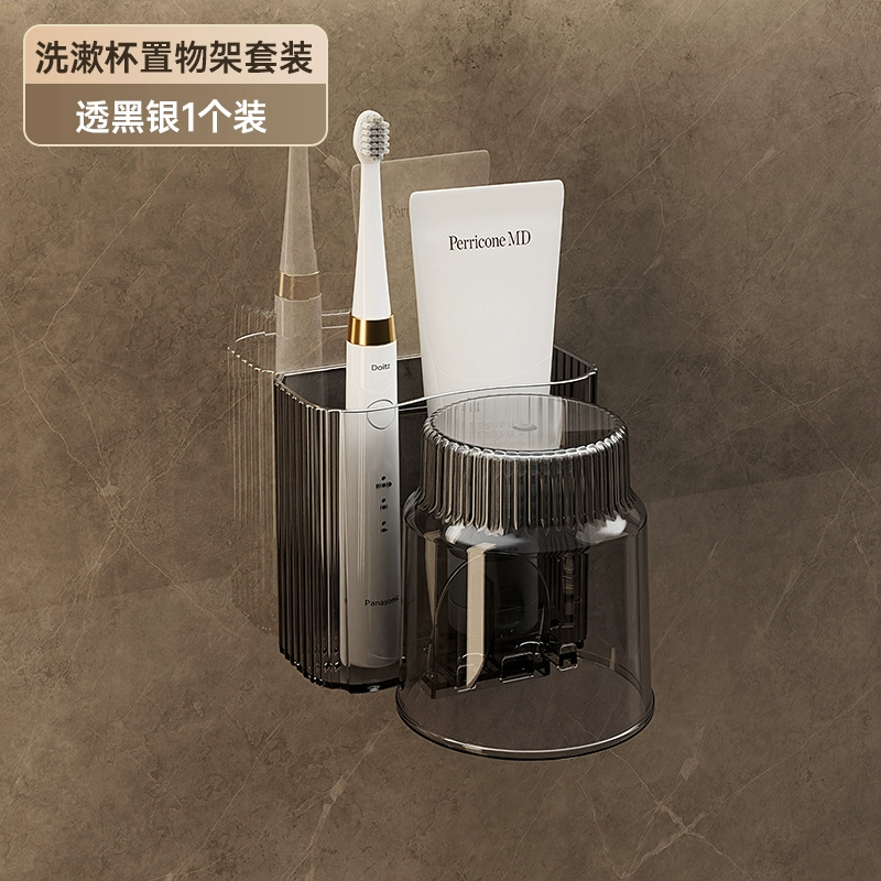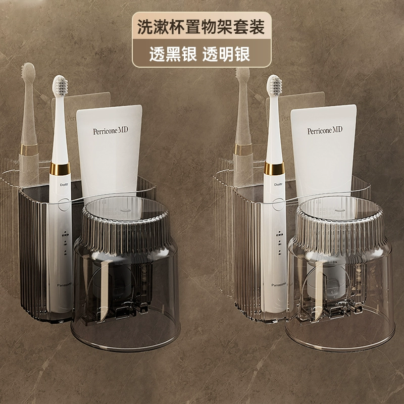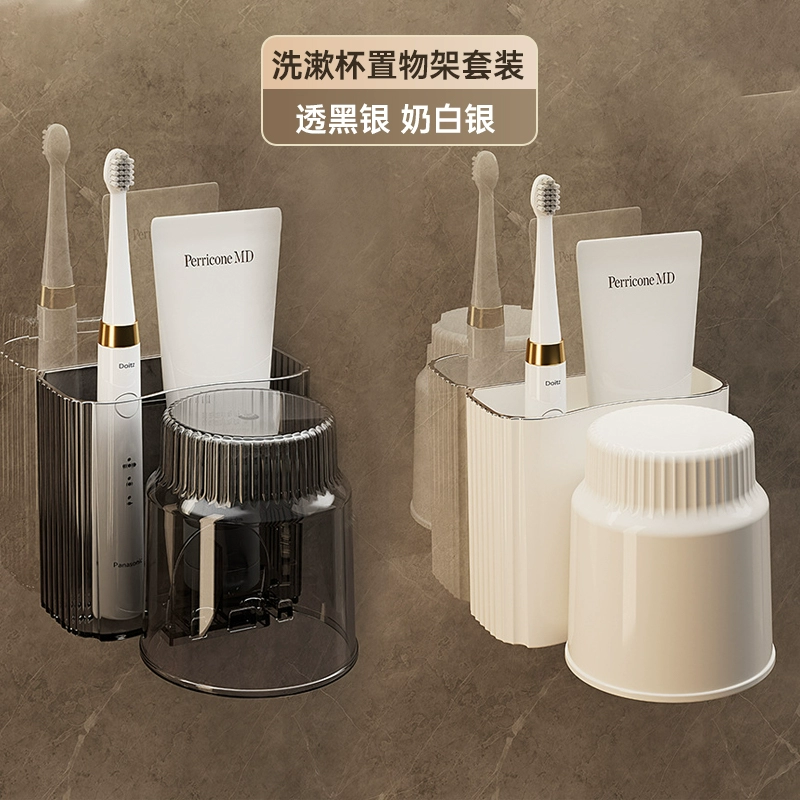 Light luxury toothbrush rack without punching electric toothbrush cup mouthwash cup wall-mounted shelf bathroom family set