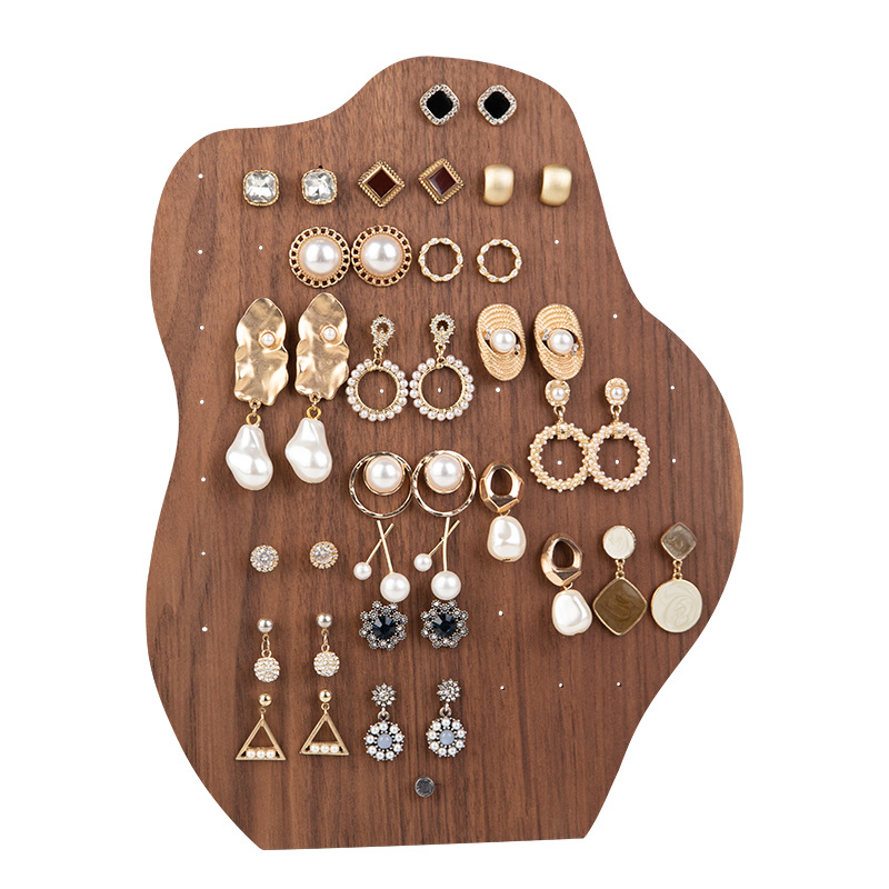 Light Luxury Walnut Earring Rack Home Desktop Dressing Table Jewelry Rack Large Capacity Display Earring Counter