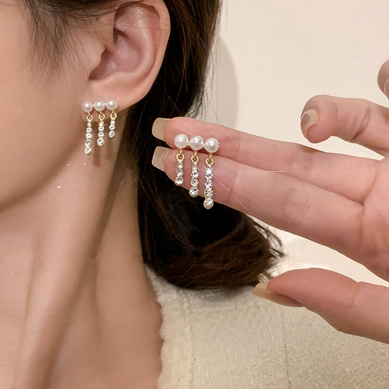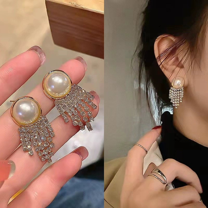 | nameOriginal | Light luxury women's hot style elegant diamond tassel pearl earrings |
