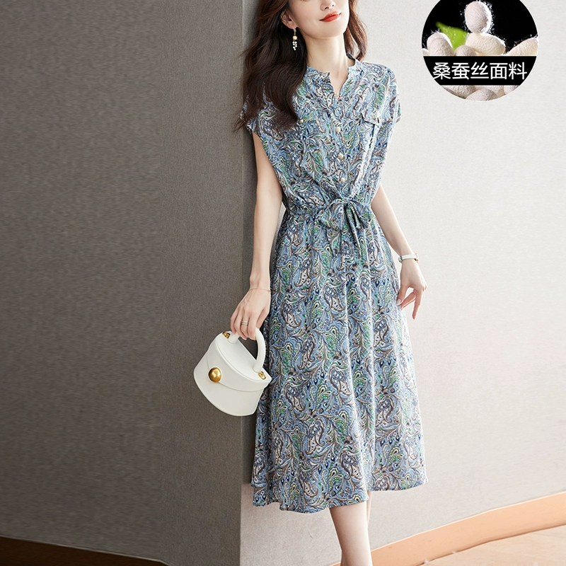 Light luxury women’s summer new style waist-length silk dress