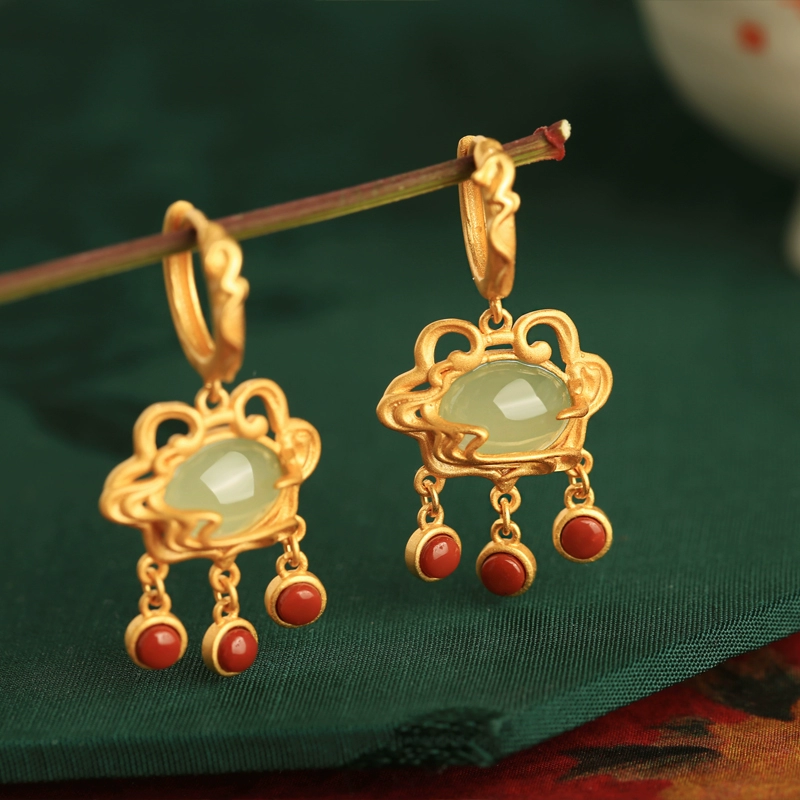 Light luxury Xiangyun natural Hetian jade girl national style Ruyi lock