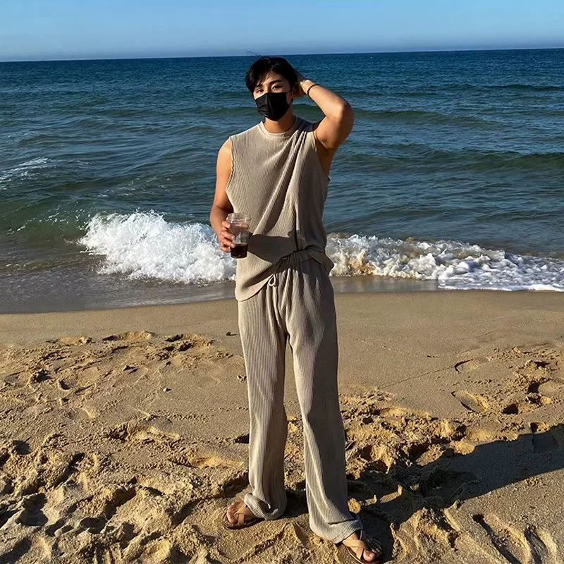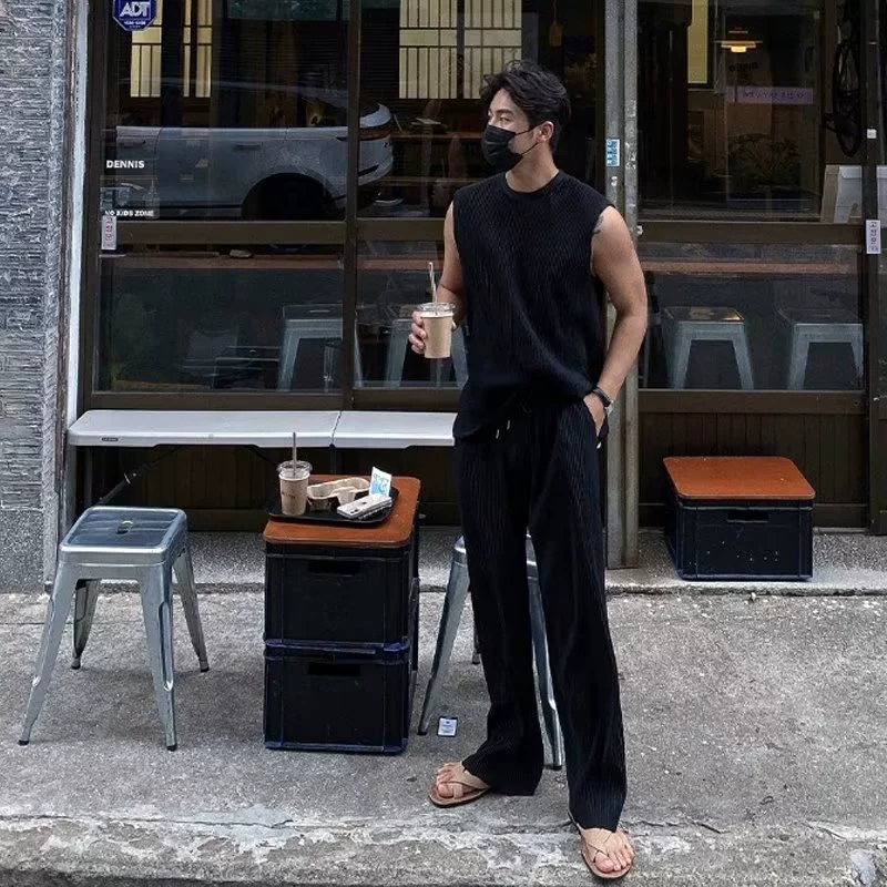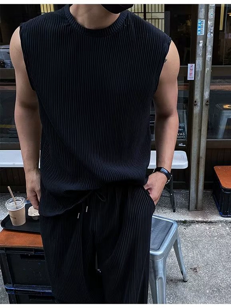 Light-mature summer ice silk fitness sports vest men’s pit striped sleeveless T-shirt American retro vest sweatshirt