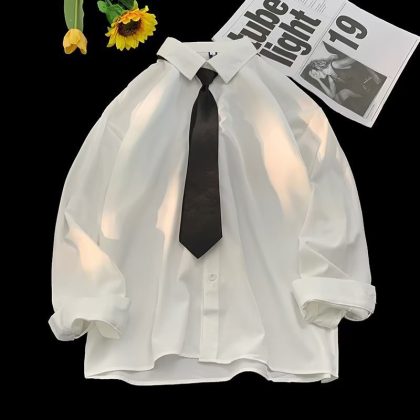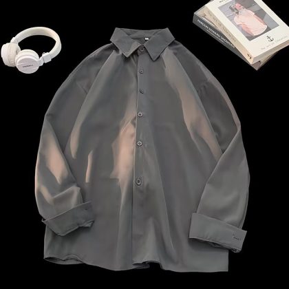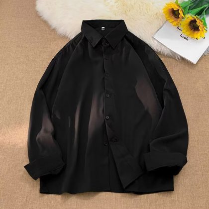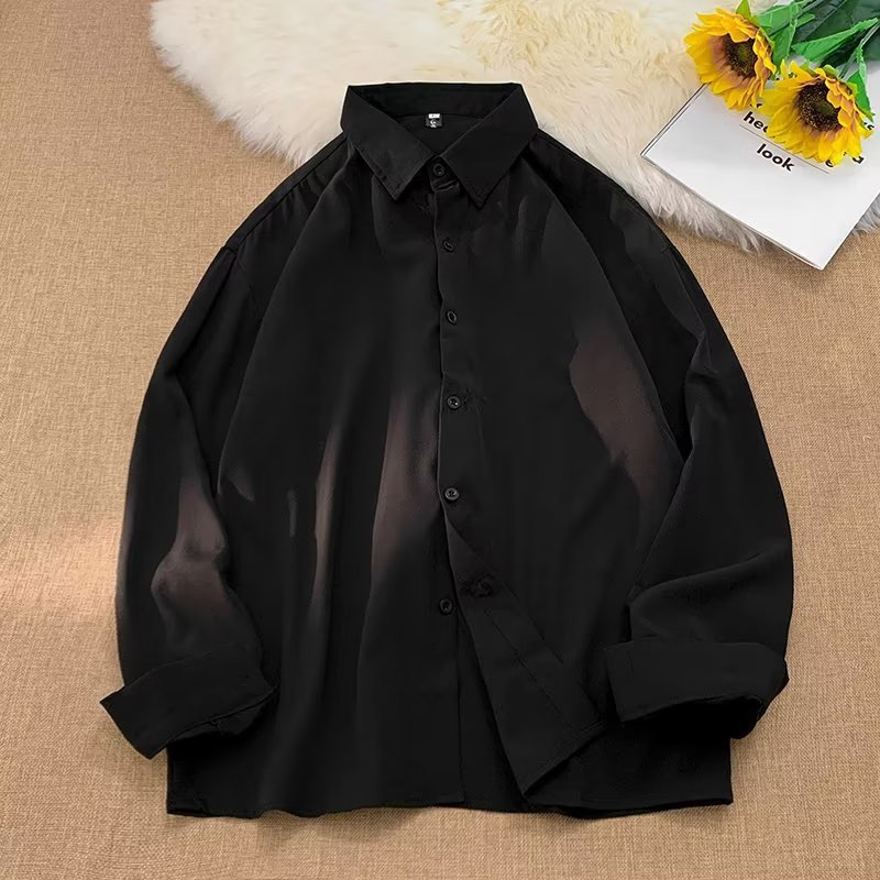 Light mature style white shirt men’s long-sleeved spring and summer Korean style ins Ruan handsome inner shirt trendy draping top clothes