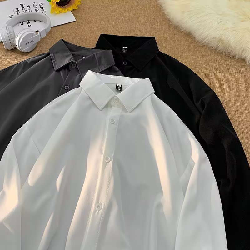 Light mature style white shirt men's long-sleeved spring and summer Korean style ins Ruan handsome inner shirt trendy draping top clothes