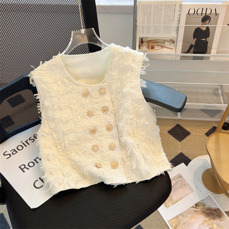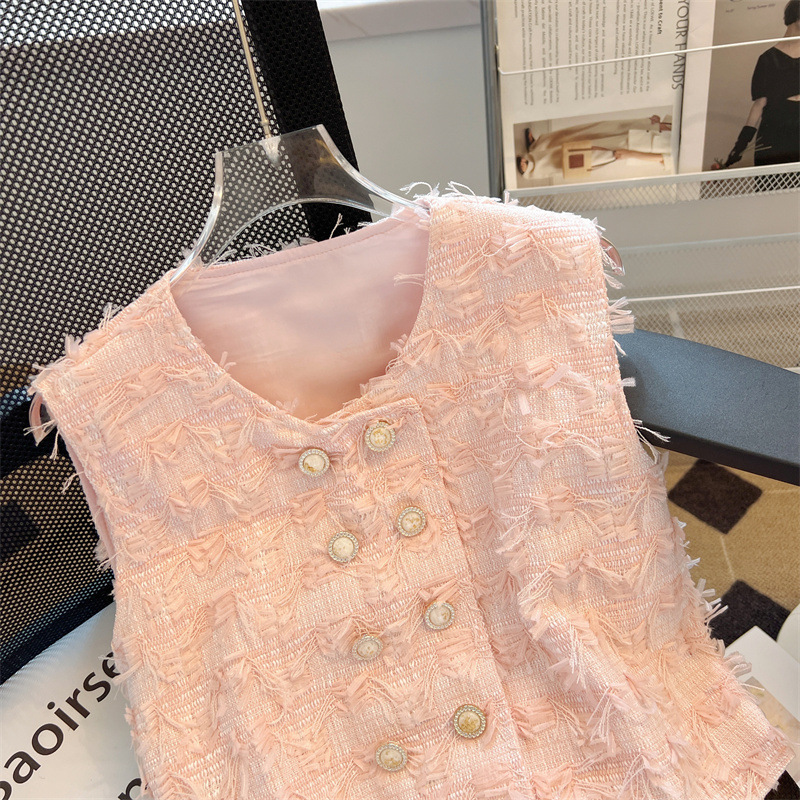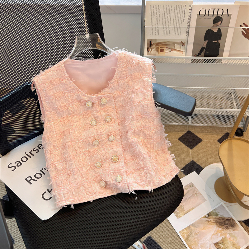 | nameOriginal | Light Pink Double-breasted Western Style Tassel Vest Vest Summer New Style Chanel Style Fashionable Slim Look Jacket Women's Top |