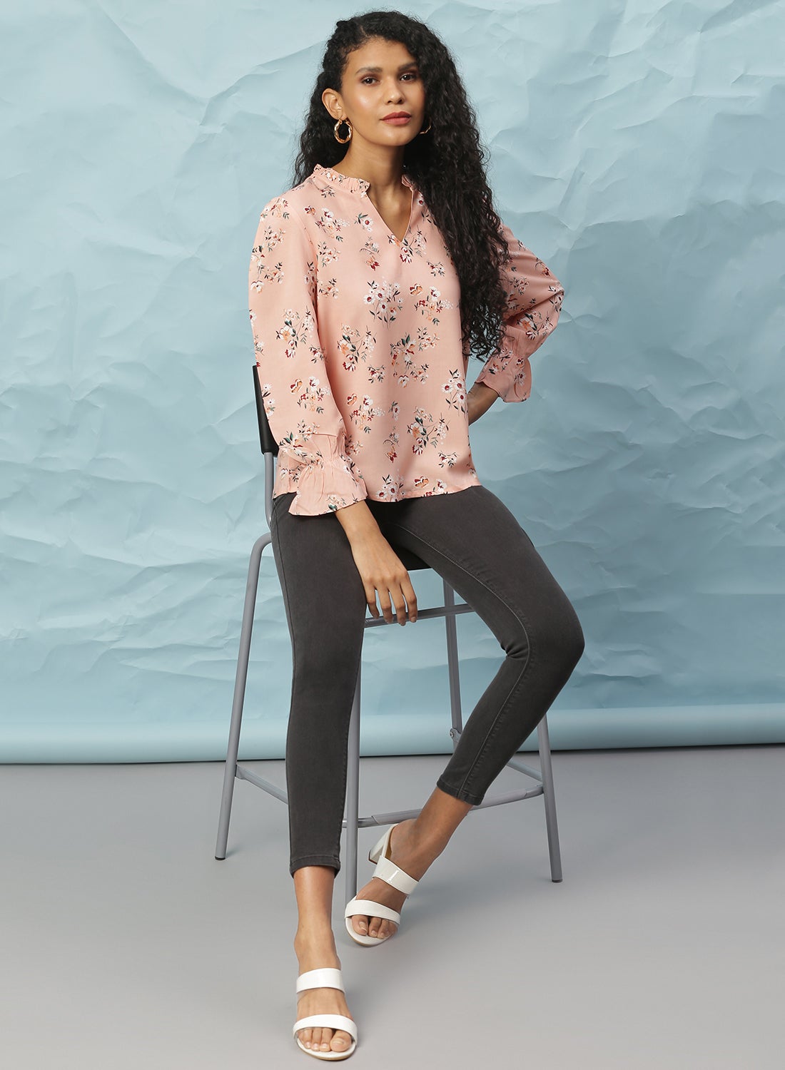 Introducing our Floral Printed V-Neck Top in a beautiful light pink and green color combination. This top is perfect for adding a touch of femininity to your wardrobe. The delicate floral print is eye-catching and adds a pop of color to any outfit. The V-neckline is flattering and adds a touch of elegance to the top. The lightweight fabric is comfortable and perfect for warmer weather. This top can be dressed up or down, making it a versatile addition to your wardrobe. Pair it with jeans and sandals for a casual look or dress it up with a skirt and heels for a night out. Don’t miss out on this must-have piece for your wardrobe!