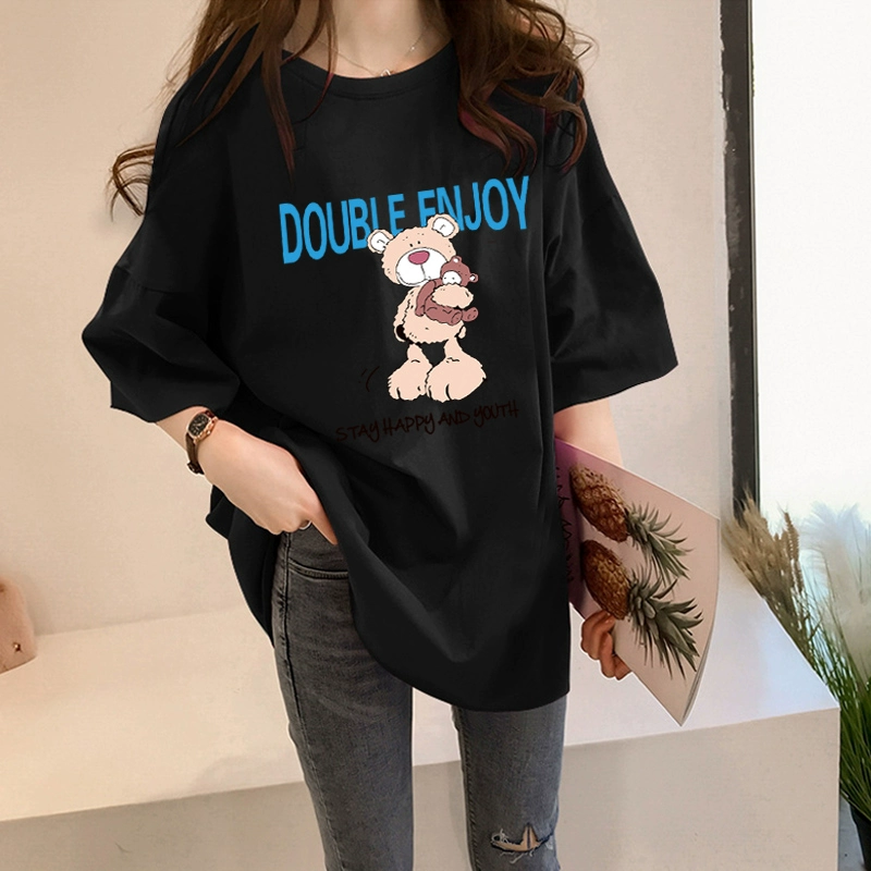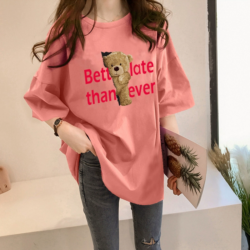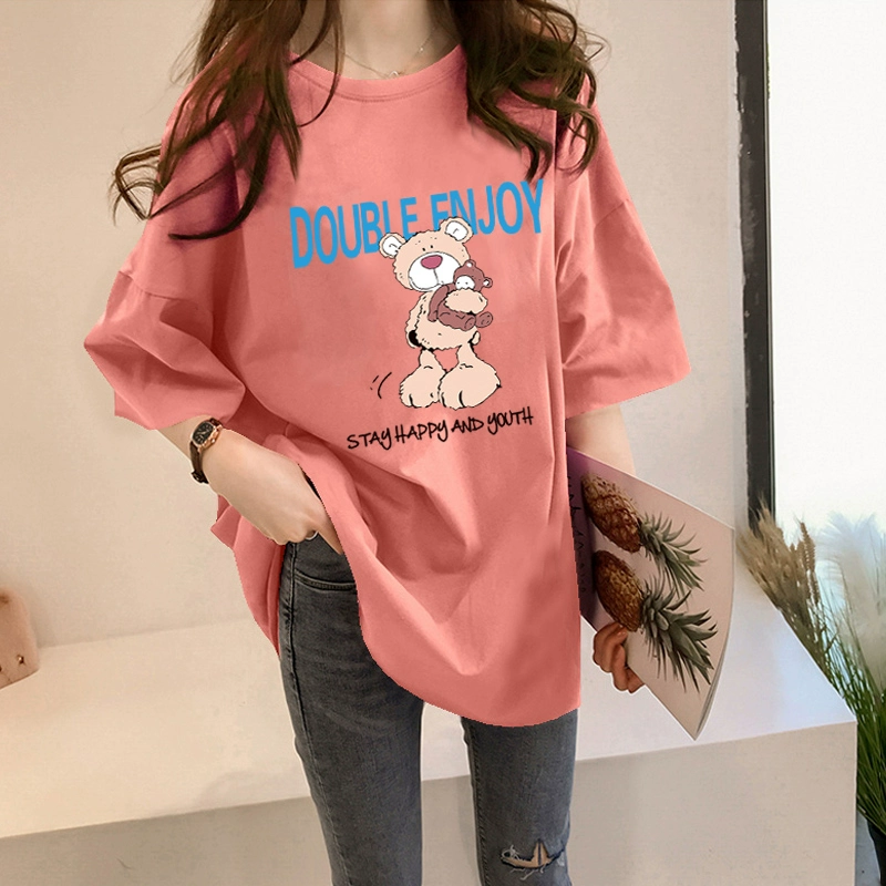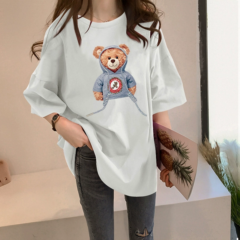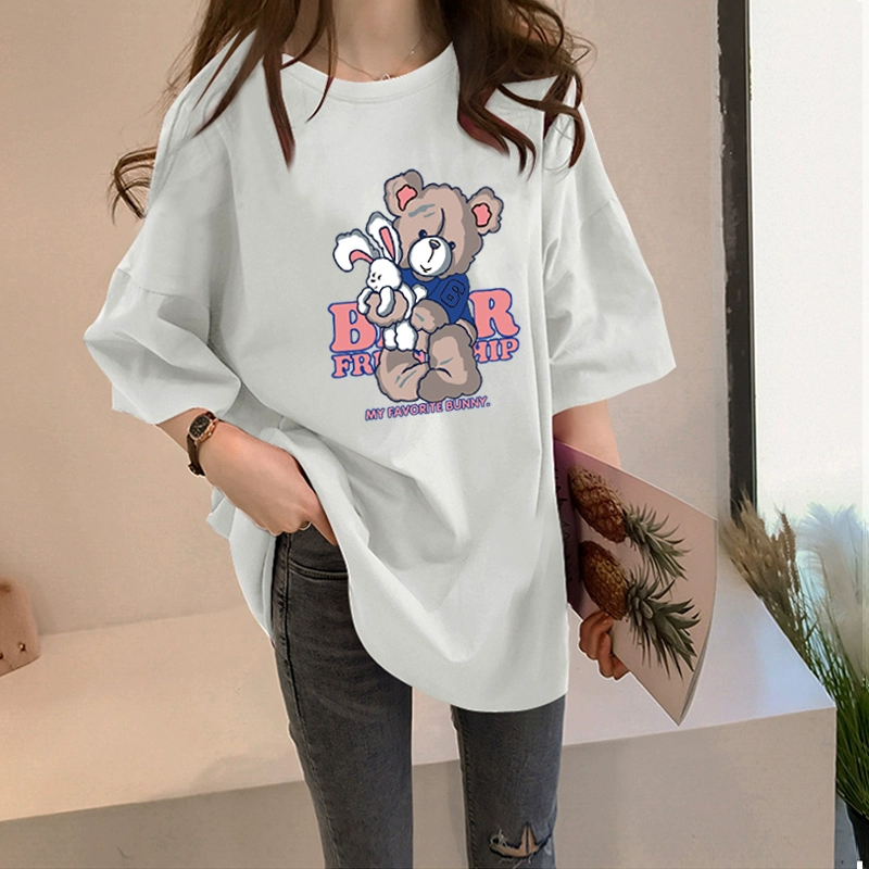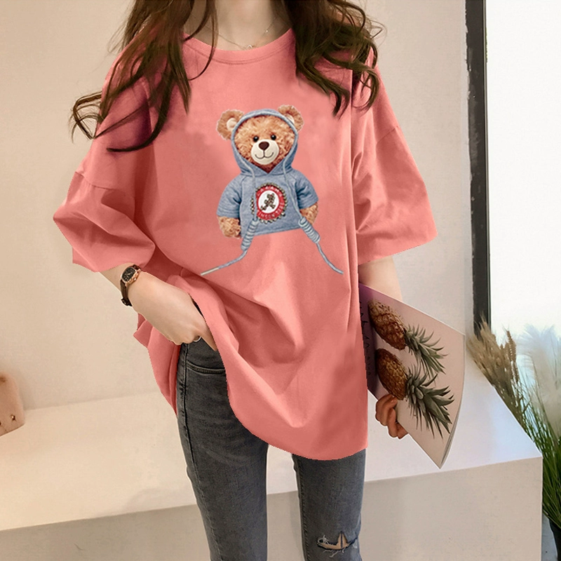 | nameOriginal | Light pink short-sleeved t-shirt women's 2021 new summer wear ins trendy cartoon bear mid-length tops women's couple wear |
