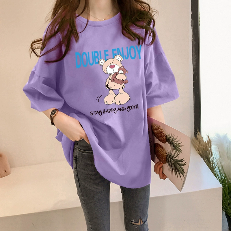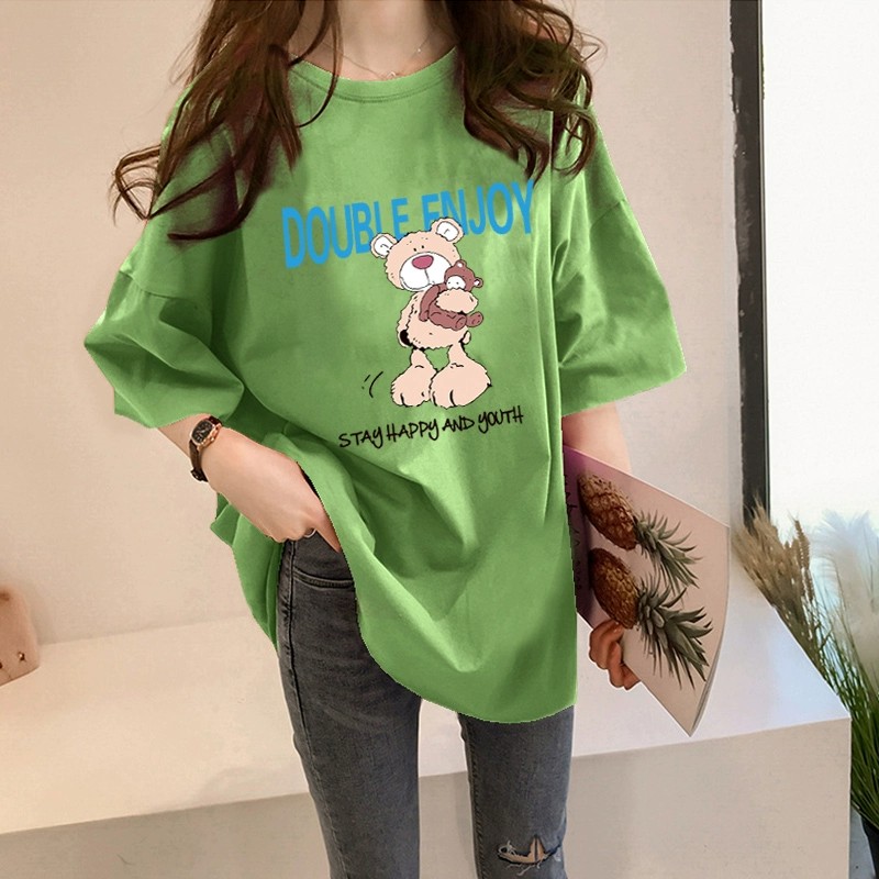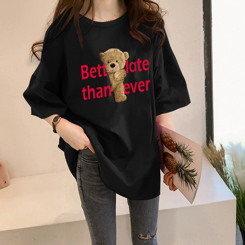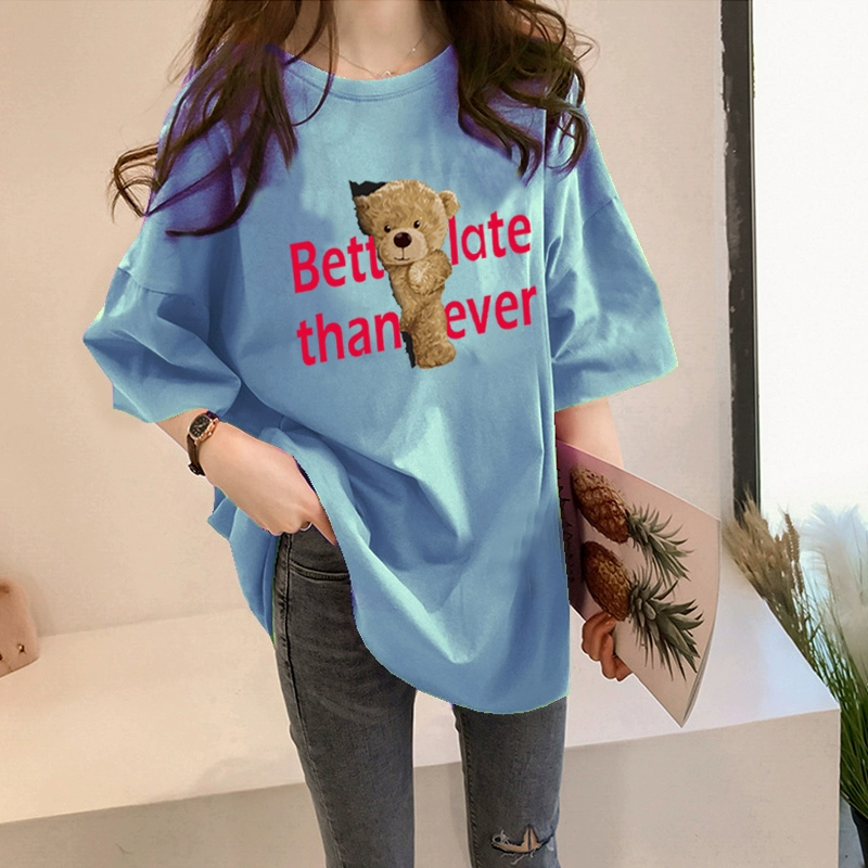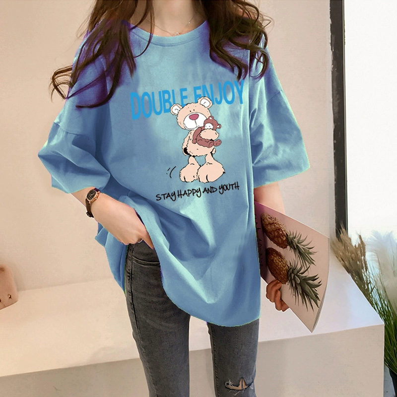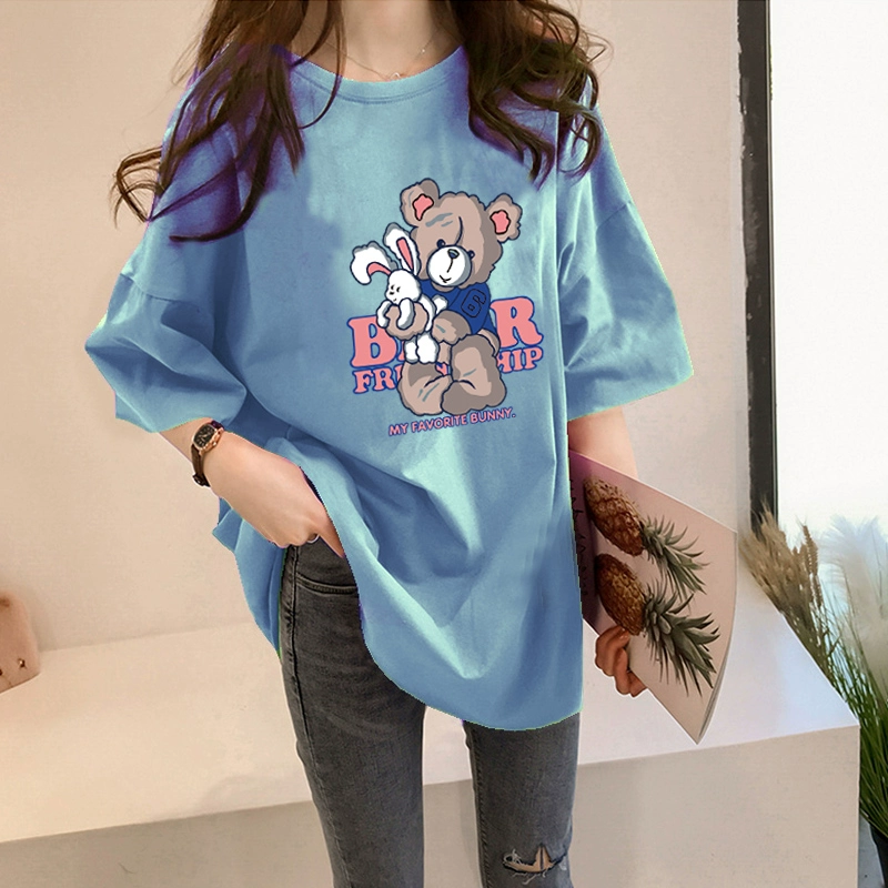 | nameOriginal | Light pink short-sleeved t-shirt women's 2021 new summer wear ins trendy cartoon bear mid-length tops women's couple wear |