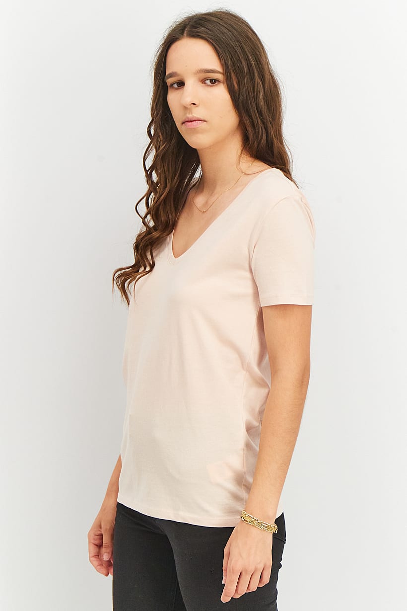 | sub_Categories | Women Clothing, Tops & Tees, women v neck short sleeve plain top light pink |
