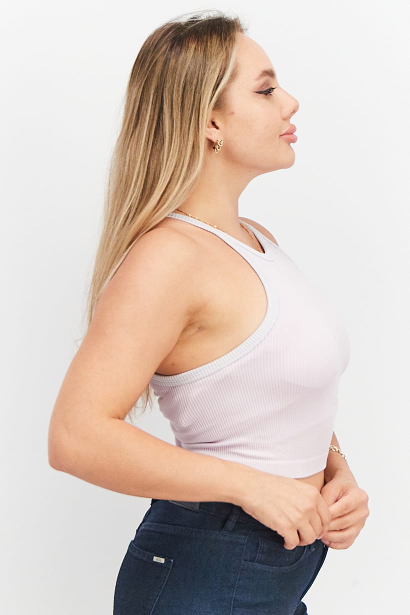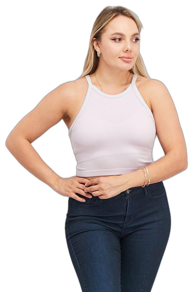 Light Purple Ribbed Knit Halter Cami for Women.