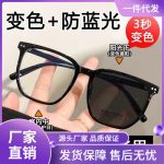 Light-sensitive discoloration myopia women’s tide without makeup large frame net-red anti-blue light discoloration glasses frame tea finished myopia