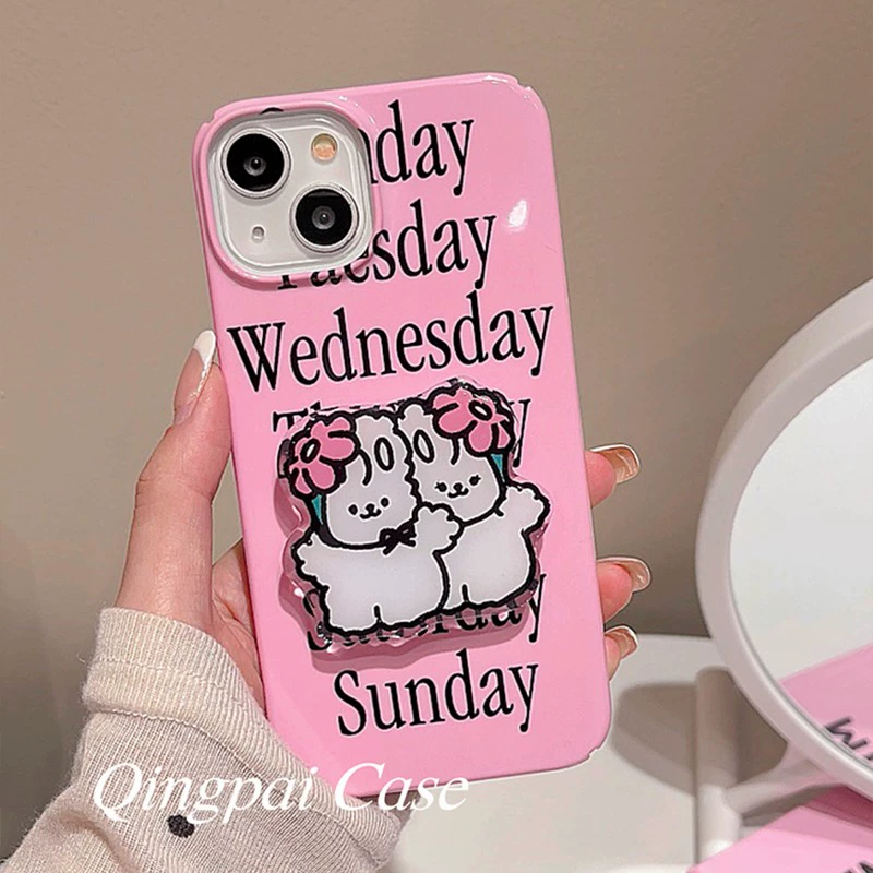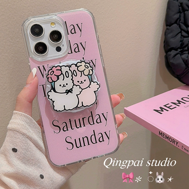 Lightly send Zhao Lusi the same pink English rabbit bracket suitable for Apple 15promax phone case iphone13 new 16Pro female 12 star Korean 14 girl 11 all -inclusive hard shell hard shell