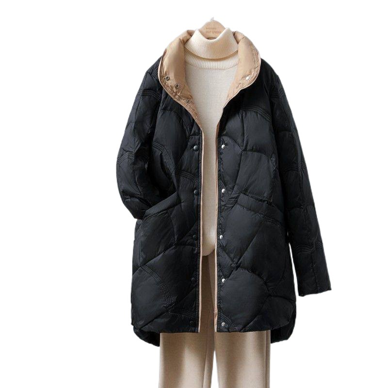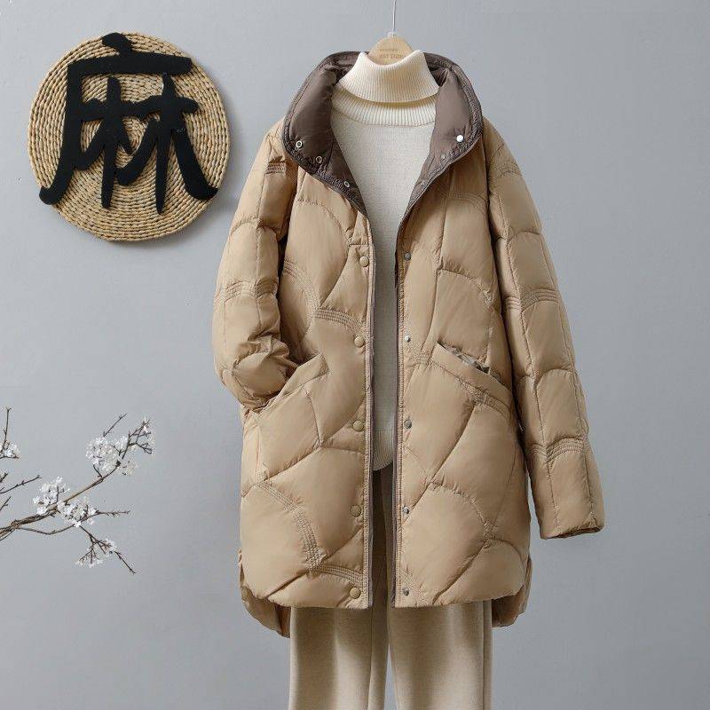 | nameOriginal | Lightweight down jacket for women 2023 new mid-length loose white duck down thin contrast color stand collar coat fashion |