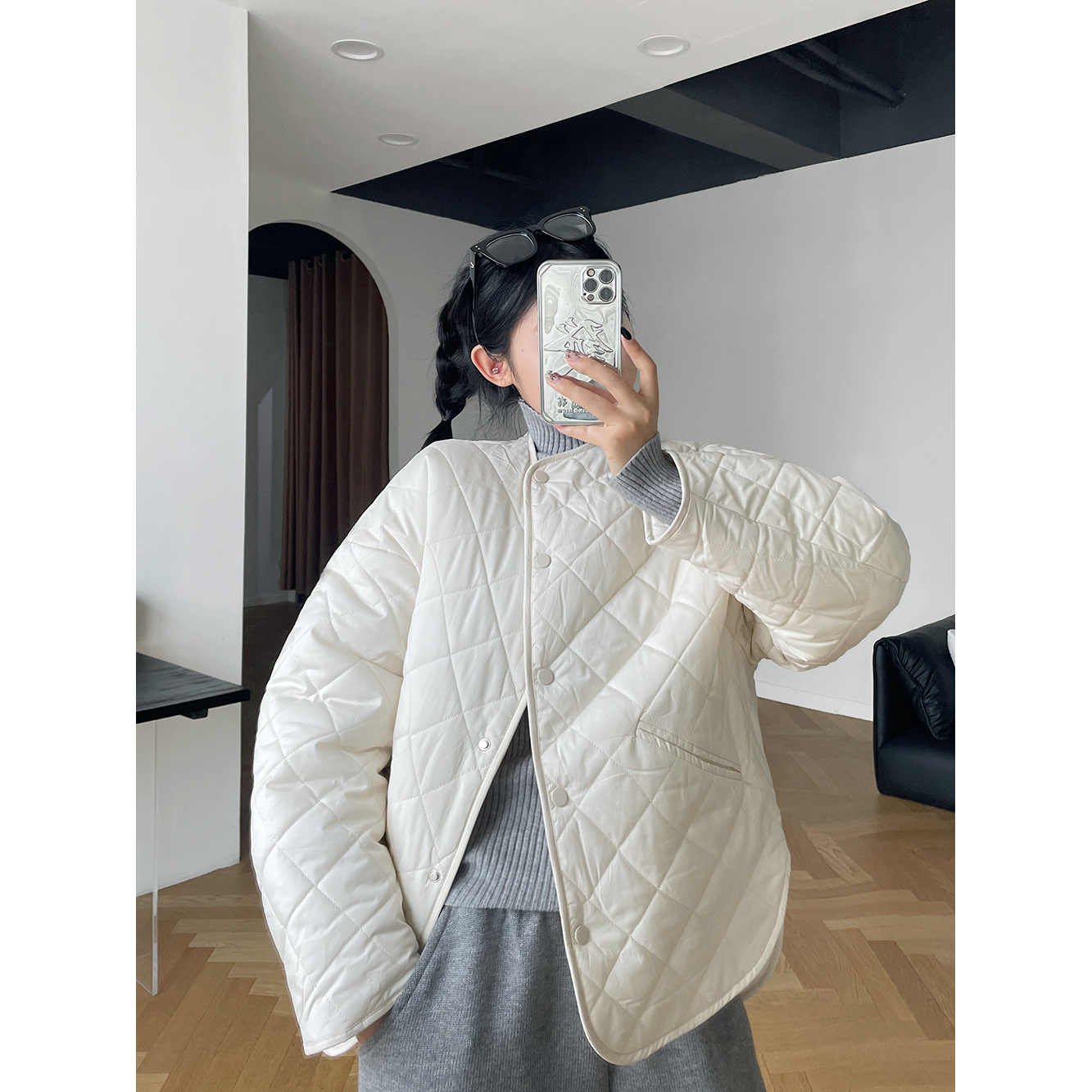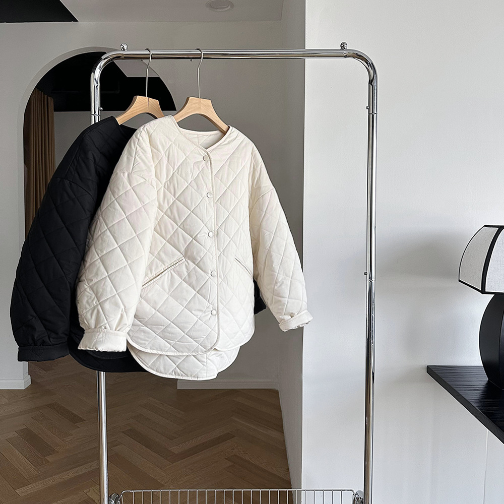 | nameOriginal | Lightweight rhombus cotton-padded coat for women 2024 Winter new Korean style casual collarless warm short bread coat 6087 |