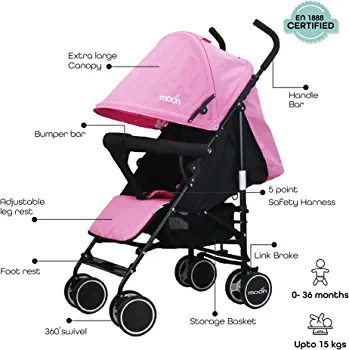 | nameOriginal | MOON Neo Plus Light Weight Travel Stroller/Pushchair for Baby/Kids/Toddler from 0 Months+(Upto 18 kg), Umbrella Fold, Multi Position Reclining Seat, Storage Basket, Shoulder Strap -Pink, 1.0 Piece |