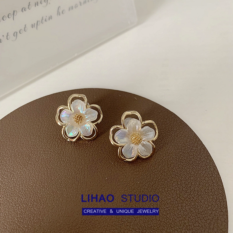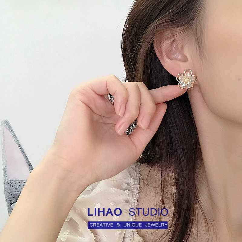 LIHAO blank mother-of-pearl flower shell earrings for women, INS style niche design, light luxury forest style super fairy earrings