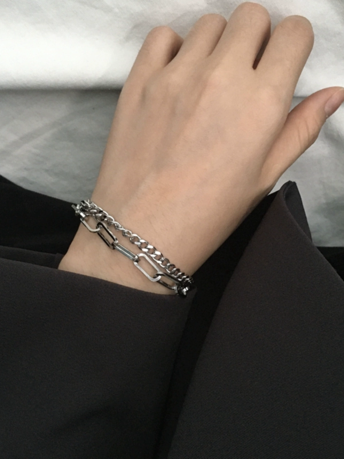 Lihao double -layer chain hip -hop punk bracelet male retro ins minimal trend fashion European and American niche design women