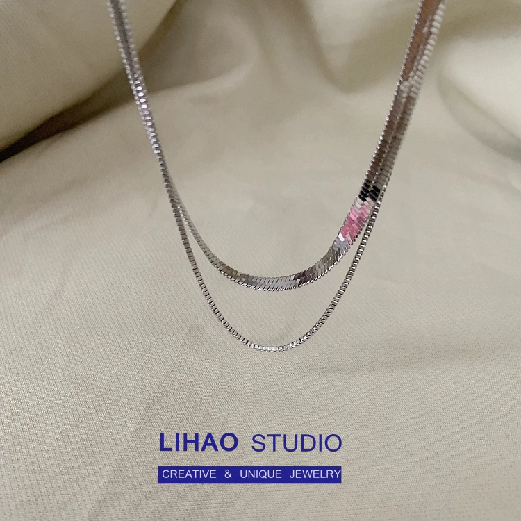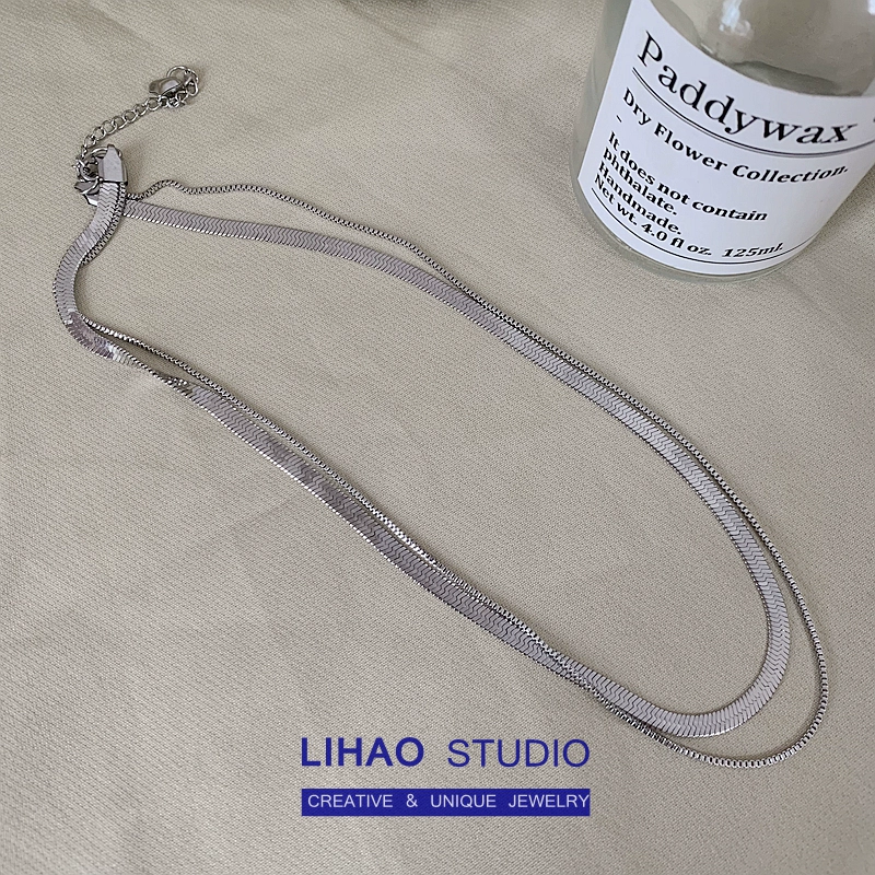 | nameOriginal | LIHAO double layer versatile titanium steel non-fading necklace for women INS trendy cool simple personality advanced thick and thin snake bone chain |