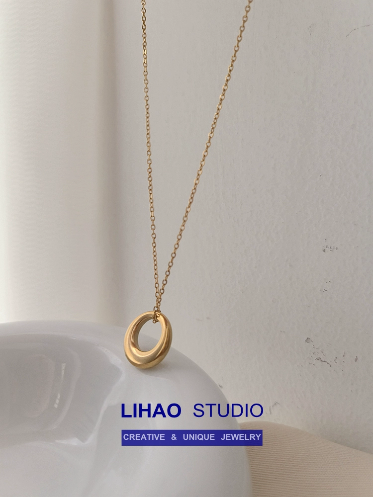 LIHAO gold ring necklace women’s 24K gold light luxury niche retro style fashionable exquisite high-end clavicle chain