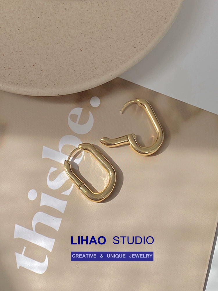 | nameOriginal | LIHAO gold U-shaped shiny earrings, women's 925 silver needle high-end temperament niche design ins earrings |