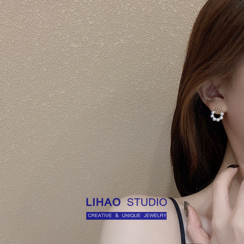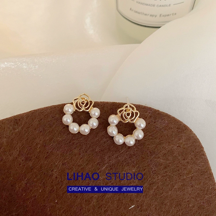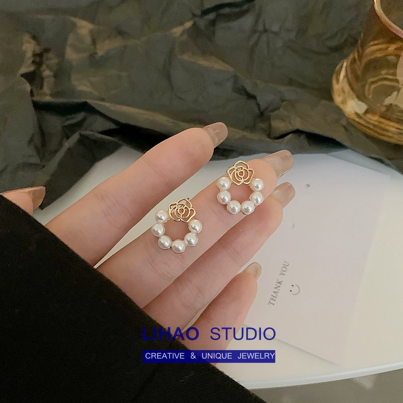 | nameOriginal | LIHAO niche retro rose 925 silver needle pearl hollow flower fairy short earrings slimming earrings |