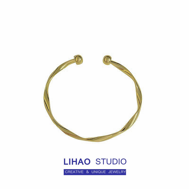 Lihao retro 18K Golden Mobius Ring Open Bracelet Women INS Nichels Design Simple Temperament