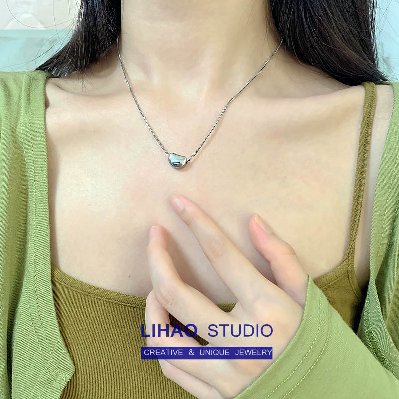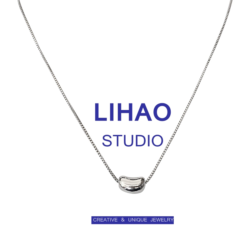 LIHAO titanium steel non-fading silver bean necklace women's INS summer high-end simple versatile niche clavicle chain