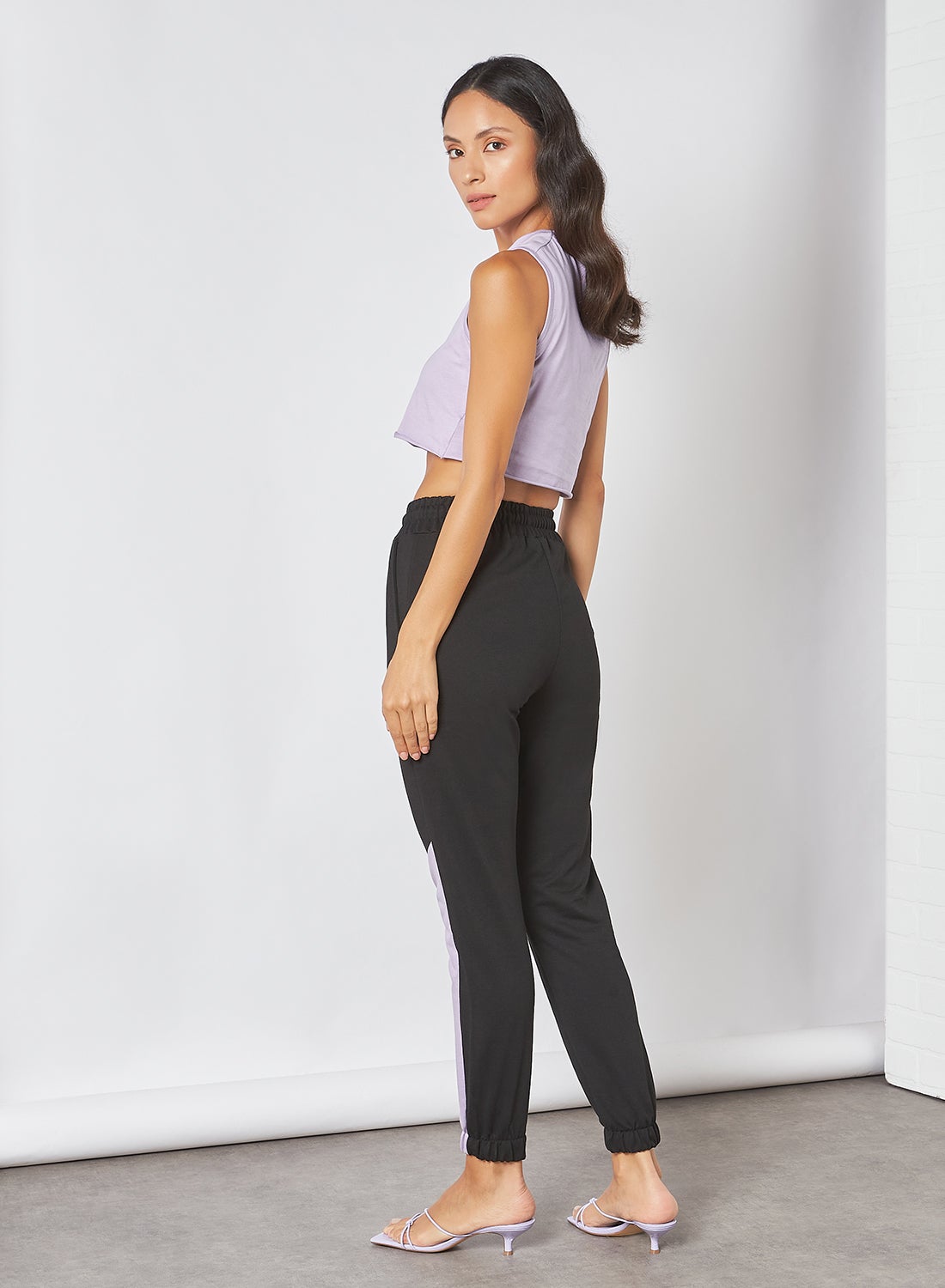 This set includes a crop tank top and joggers that are made from a soft and comfortable cotton blend material. The style is classic and simple, with an elasticated waist that has adjustable drawstrings for a perfect fit. The joggers also have elasticated bottoms for added comfort. To keep the set looking its best, please follow the wash instructions on the care label.
