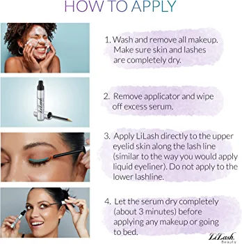 | descriptionOriginal | LILASH APPLICATION DIRECTIONS FOR LILASH Remove the applicator from the tube and wipe off excess serum *Do not apply to the lower eyelids or directly to lashes. For sensitive eyes, apply every other day during the first 10 days. ARE MY RESULTS PERMANENT? LiLash is a beauty treatment. Continued use is necessary to maintain results. If discontinued, your eyelashes will eventually return to their length before use. A 1-2 week break is recommended between treatments to allow your hair follicles to rest. HOW LONG DOES A TUBE OF LILASH LAST? LiLash is a 3-month (2 ML) or a 6-month (4 ML) treatment cycle depending on the size purchased. With proper application, a tube of LiLash 2 ML will last 3 months. One tube of LiLash 4 ML will last six months. IS LILASH SAFE? Yes! LiLash is a physician-formulated serum that has been ophthalmologist tested, making it safe for sensitive eyes and contact lens wearers. WHEN WILL I SEE RESULTS? Your lashes will begin to wake up around 6 weeks and reach full bloom in 60-90 days, with ultimate results in 12 weeks CAN I USE LILASH ON MY LOWER EYELID? It is recommended that you only apply LiLash to your upper eyelid. When applied correctly, LiLash will gently travel to the lower lashes when you blink. Why use LiLash? LiLash Purified Eyelash Serum was formulated by a physician to safely and effectively enhance the length and curl of natural eyelashes naturally. WHAT'S IN LILASH? LiLash contains a number of cosmetic ingredients to condition and improve the natural appearance of eyelashes. Free of Paraben & vegan-friendly. REAL RESULTS. REAL PEOPLE Used daily for 4-6 weeks, LiLash will help achieve the longest, fullest lashes you’ve ever had. BOLDER BROWS LiBrow safely fortifies and conditions your brow follicles while gently darkening brow hair with a unique botanical tinting agent CAN I USE LIBROW ON MY EYELASHES? We do not recommend using LiBrow on your eyelashes. LiBrow was specifically created to enhance eyebrow hairs. The potent formula works with the skin & hair in the brow area and would be too intense for the delicate & sensitive tissue on the eyelid. WHAT IS THE TINT USED IN LIBROW? The LiBrow patented brow tint contains natural botanicals that gently darken your brows by enhancing the pigment of your natural hair color. Expect your brows to be tinted one to two shades darker for beautifully enhanced definition. ARE LILASH & LIBROW PRODUCTS VEGAN? DO YOU TEST ON ANIMALS? Yes. The ingredients of LiLash & LiBrow are not animal products or derivative of animal products. We NEVER test on animals. CAN I WEAR EYELASH EXTENSIONS WITH LILASH? Yes! LiLash is the perfect complement to your lash extensions. LiLash fortifies and strengthens lashes at the hair follicle, promoting healthier lash growth and less natural breakage. This allows you to enjoy your extensions longer. WHEN WILL MY PRODUCTS EXPIRE? After your product is open, it will last 9 months, with no degeneration of impact. If your product is unopened, it will last 2 years. Please do not use your product after 3 years. The active ingredient will not be effective, after 3 years. |