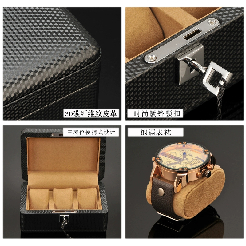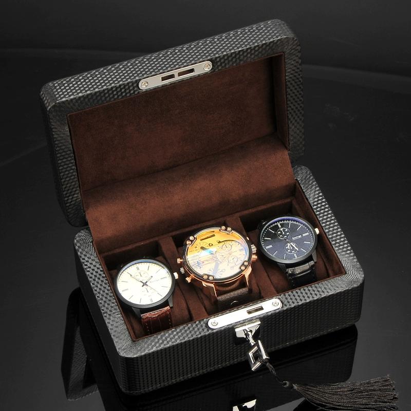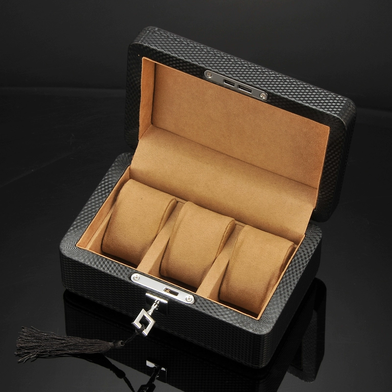 Lili carbon fiber pattern leather watch box wooden Nordic simple mechanical watch collection storage box finishing box with lock