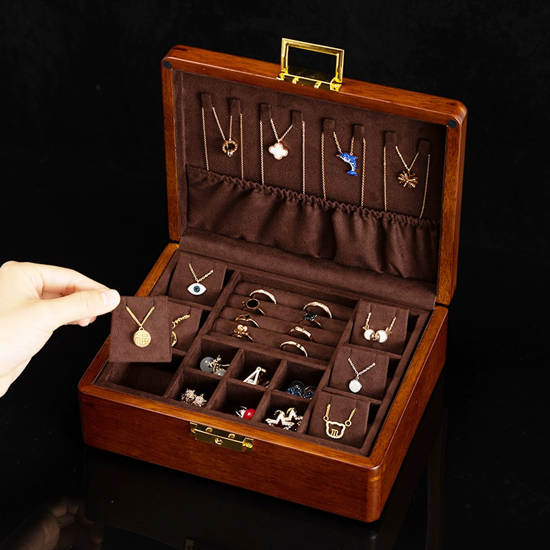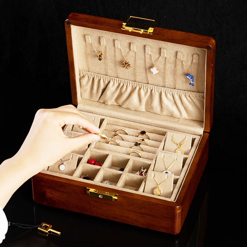 | nameOriginal | Lili golden silk teak jewelry storage box solid wood box with lock large capacity pendant necklace ring bracelet storage box |
