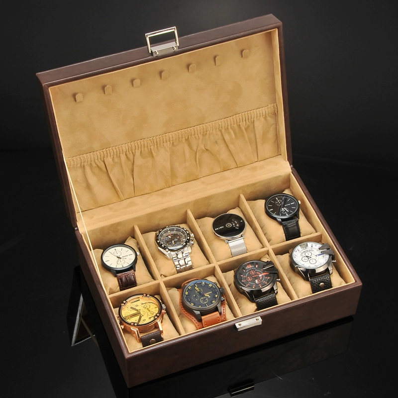 | nameOriginal | Lili new cowhide pattern watch storage box retro simple home watch box collection display box eight watch positions with lock |