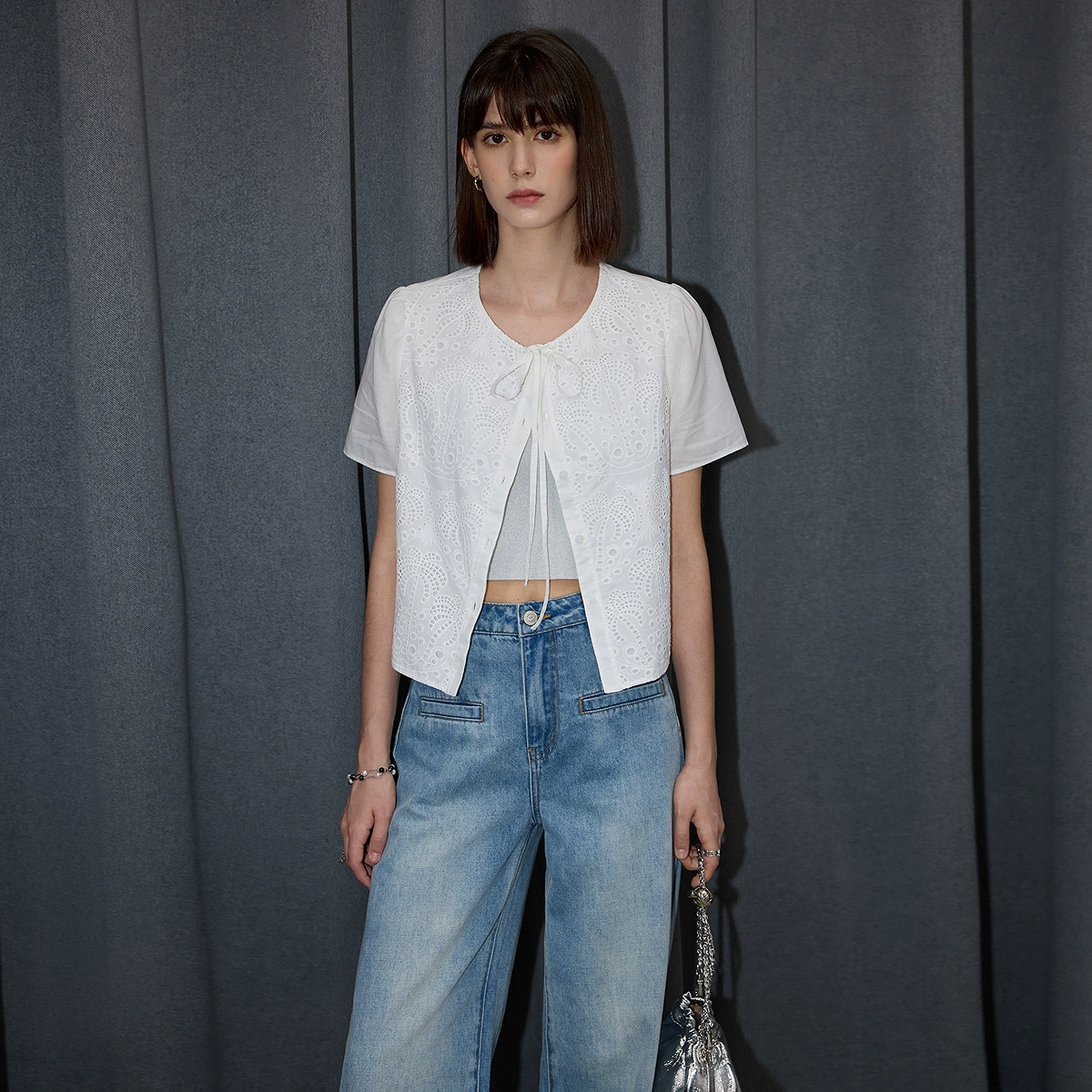 | nameOriginal | LILY French hollow cotton comfortable white shirt |