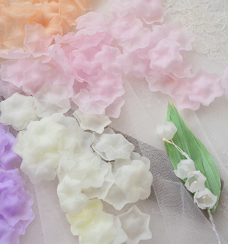 . Lily-of-the-valley flower piece three-dimensional flower making ironing yarn petals accessories wedding dress headdress hand-made cloth flower material now