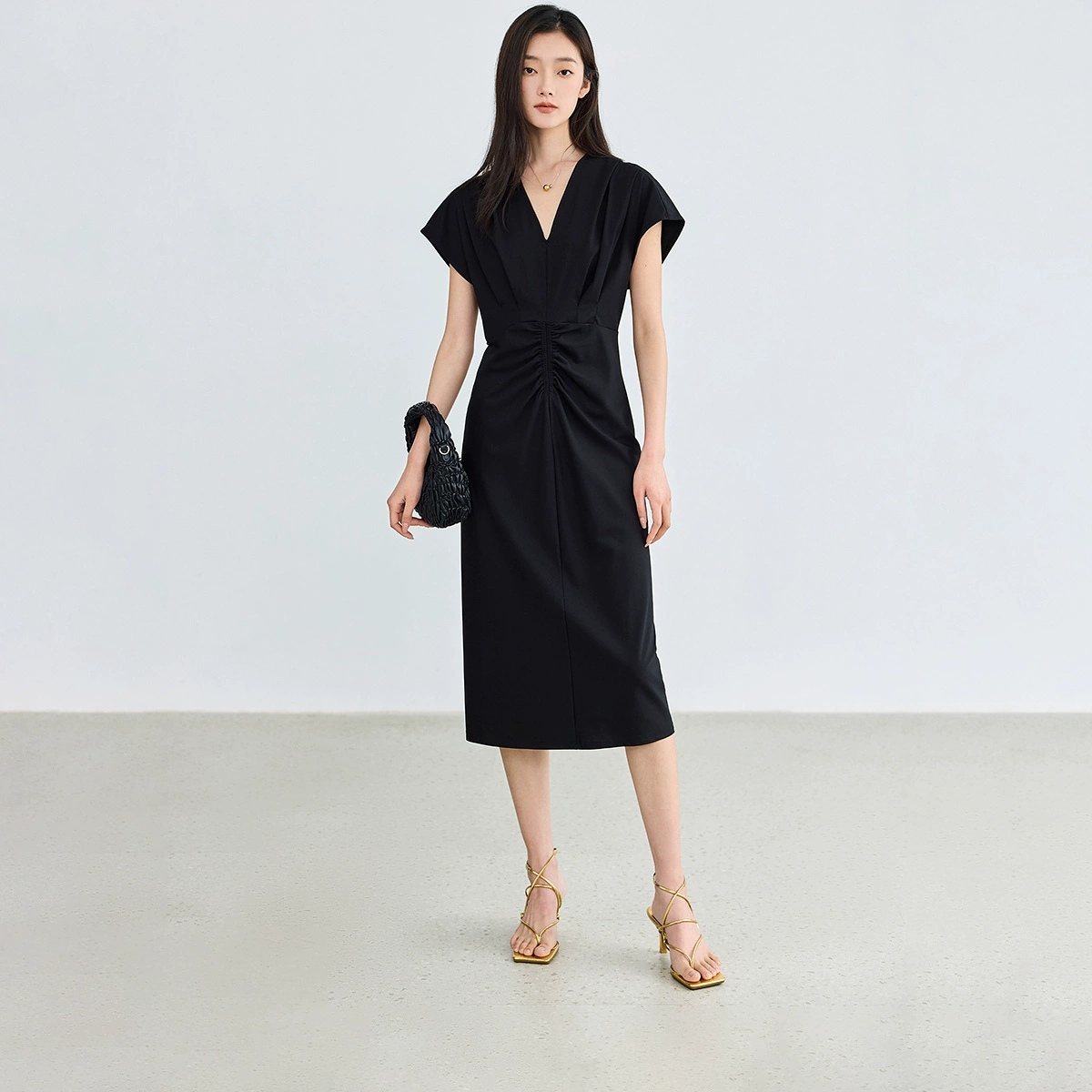 LILY summer elegant temperament V-neck three-dimensional little black dress