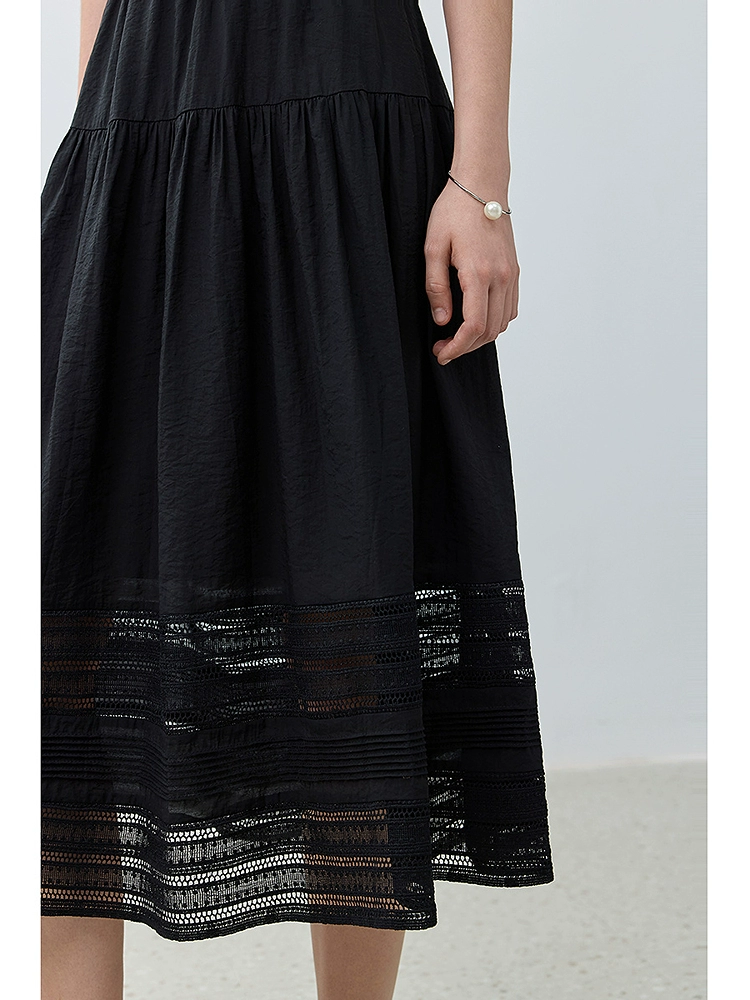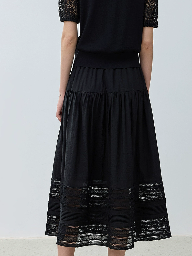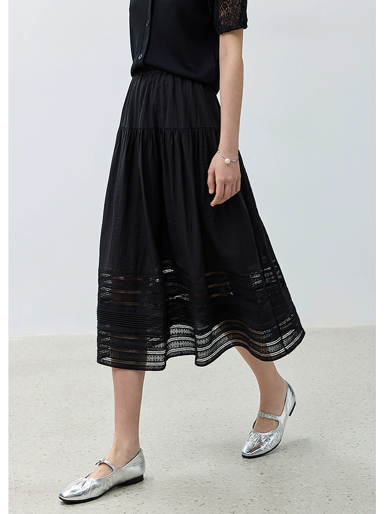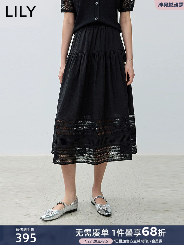 | nameOriginal | LILY2024 new autumn women's clothing Lyocell hollow lace high waist elegant retro black A-line skirt for women |