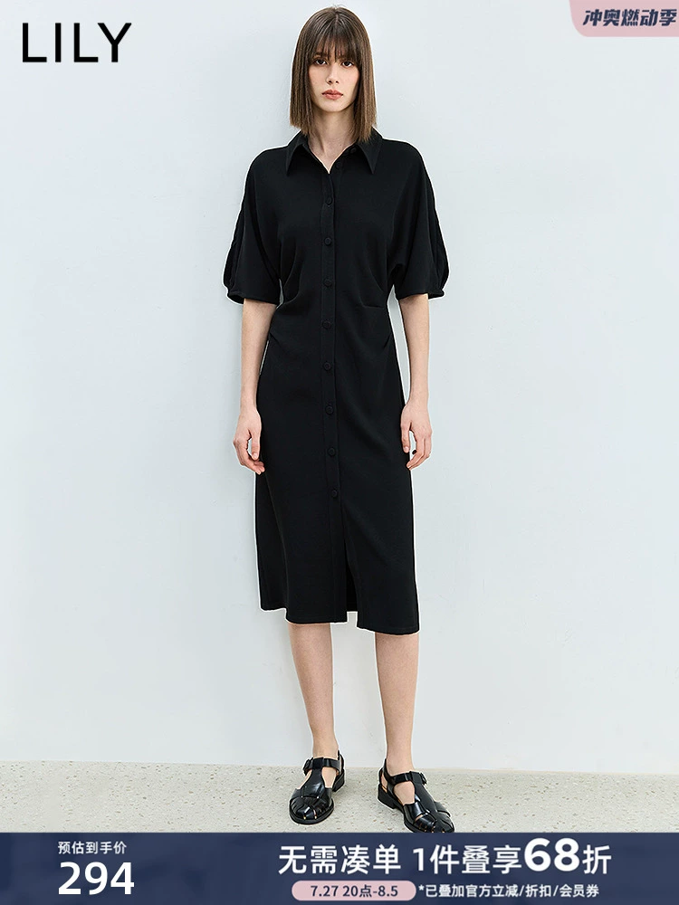| nameOriginal | LILY2024 new summer style waffle fashion shirt collar slim and relaxed commuting simple and light dress for women |