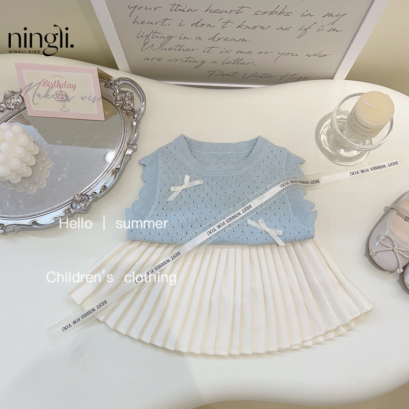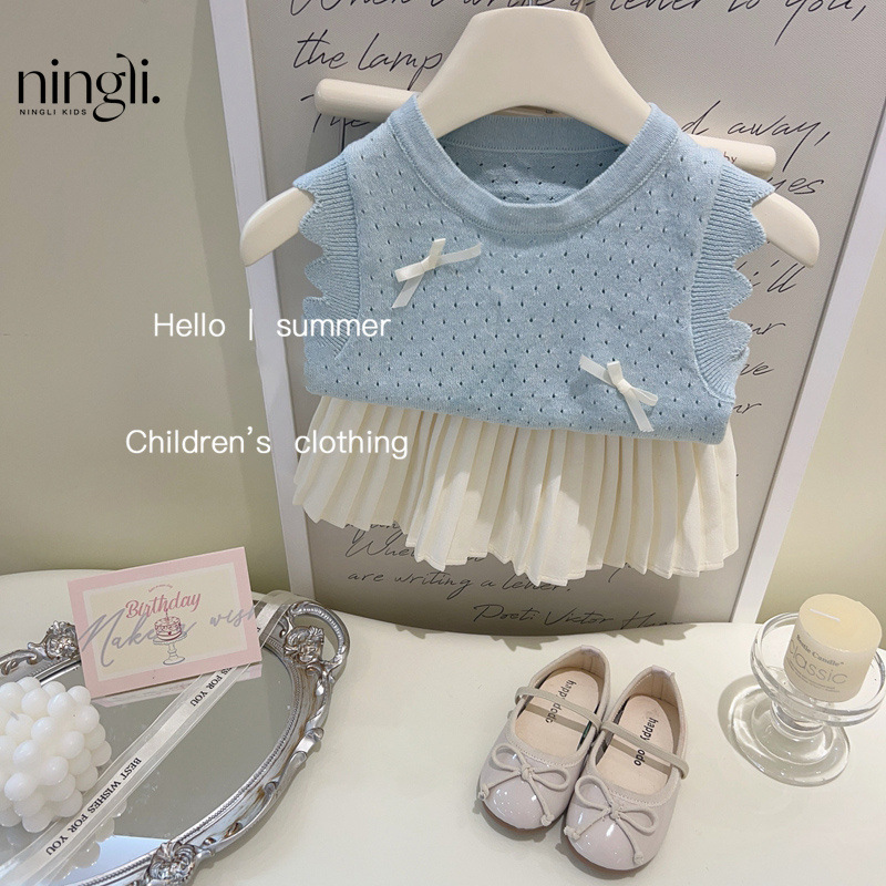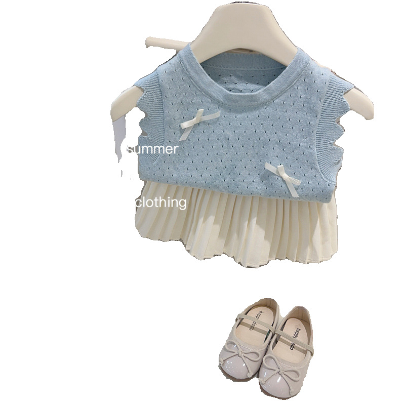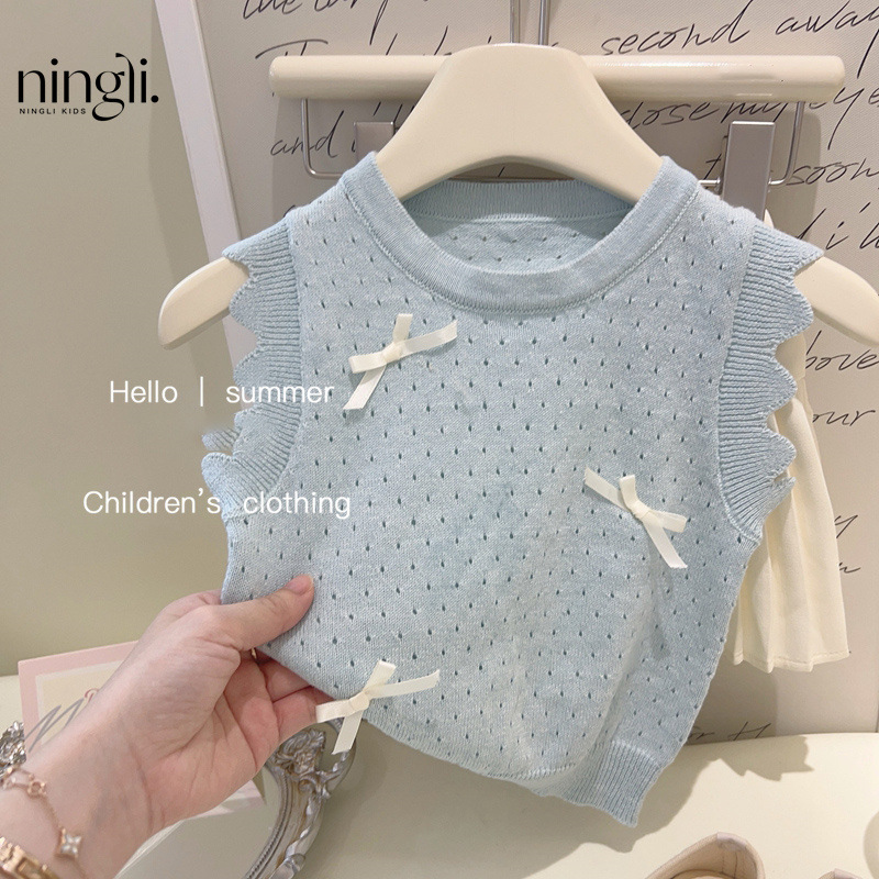 | nameOriginal | Lime Children's Wear Summer Girls' Sleeveless Crewneck Fresh All-match Cool Women's Treasure Pink Hollow Bow Vest Trendy |