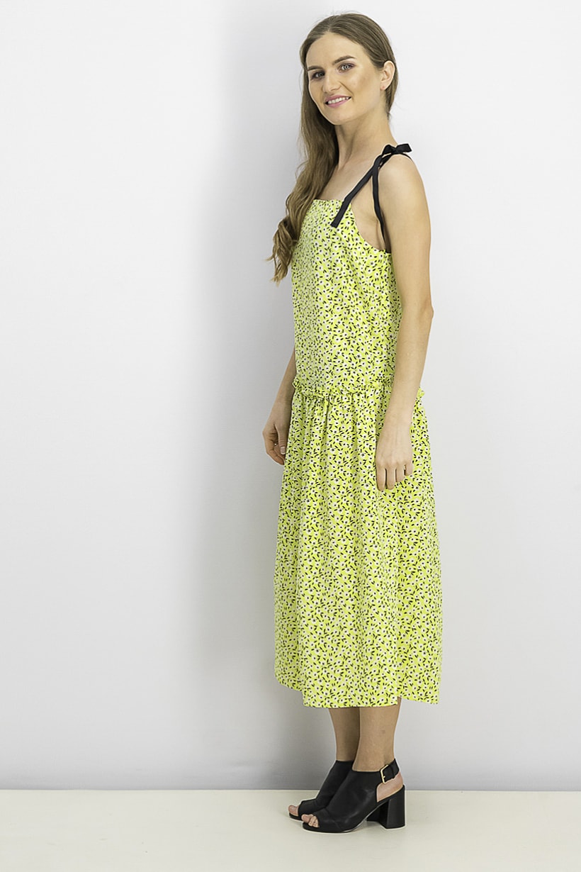 | sub_Categories | Women Clothing, Dresses, women floral print sleeveless midi dress lime green |