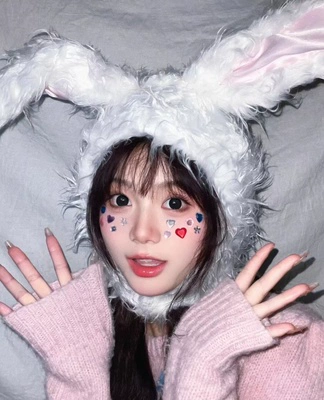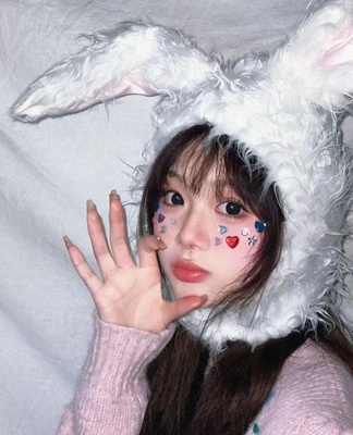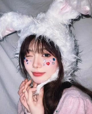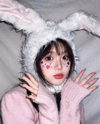 Lin Xiaozhai's same style Douyin soft cute girl heart plush rabbit long ears hood hat photo acting props