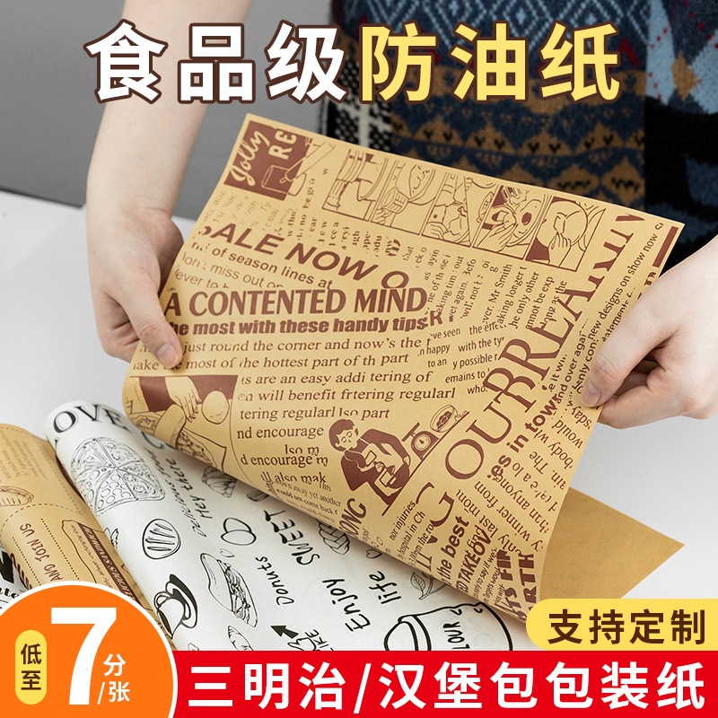 Lined film greasy paper rice ball hamburger sandwich wrapping paper snacks greasy paper baking bread food dining plate cushion paper
