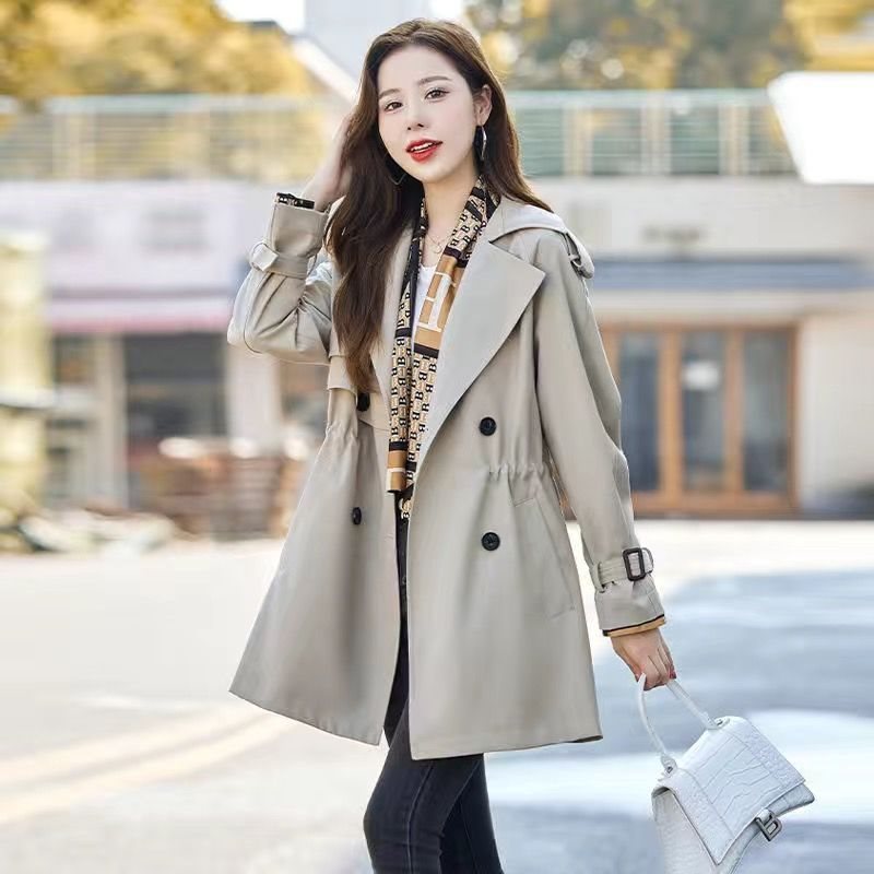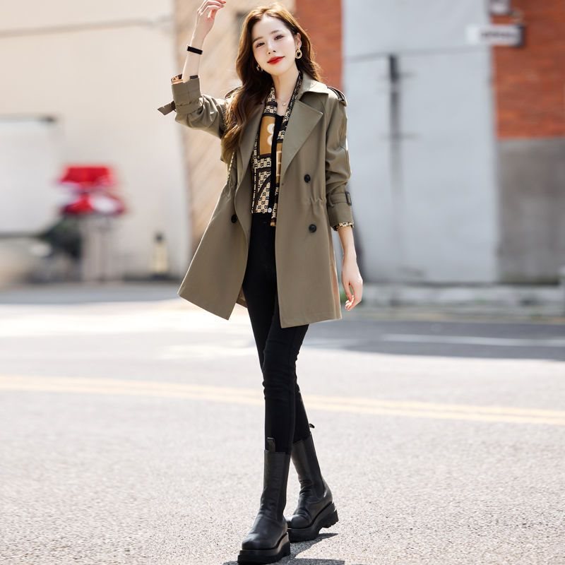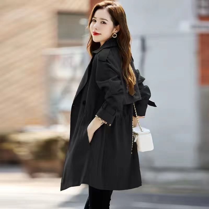 [Lined] Mid-length windbreaker coat women’s spring and autumn new Korean style loose plus size short coat trendy