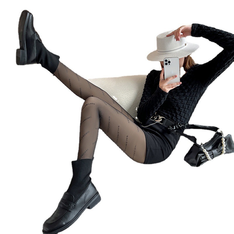 | nameOriginal | Lined with velvet black silk Paris letter black fun winter black stockings light leg skin-transparent leggings pedal pantyhose |