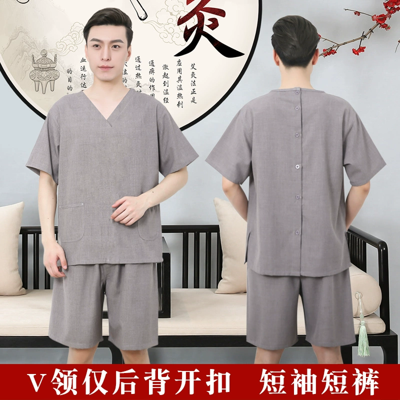 | nameOriginal | Linen cotton button-down open back couple's moxibustion suit |